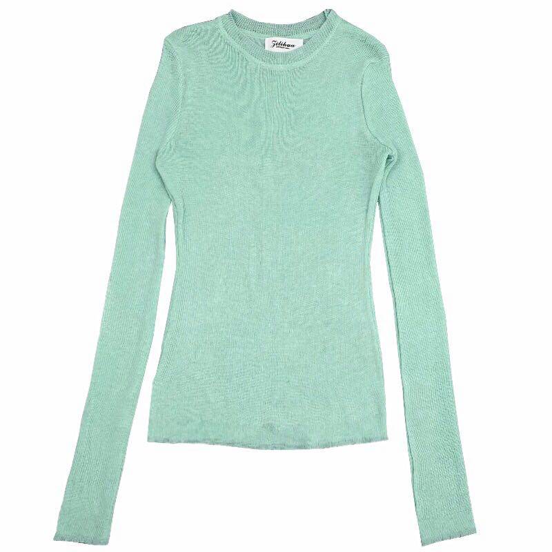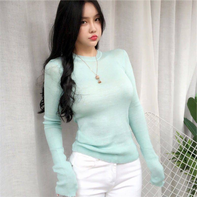 韩国东大门2025春季新款修身百搭薄荷色长袖针织衫女打底衫上衣潮