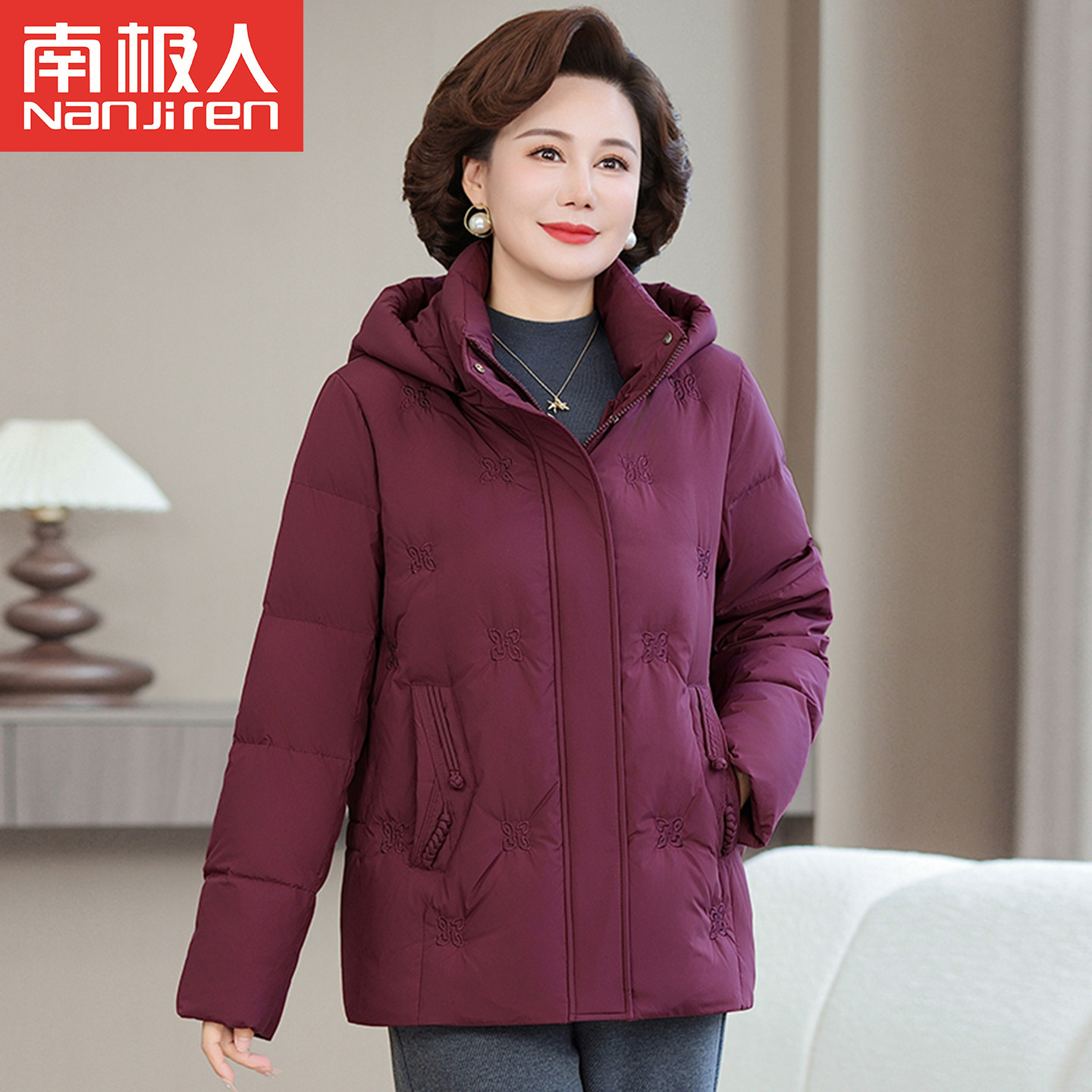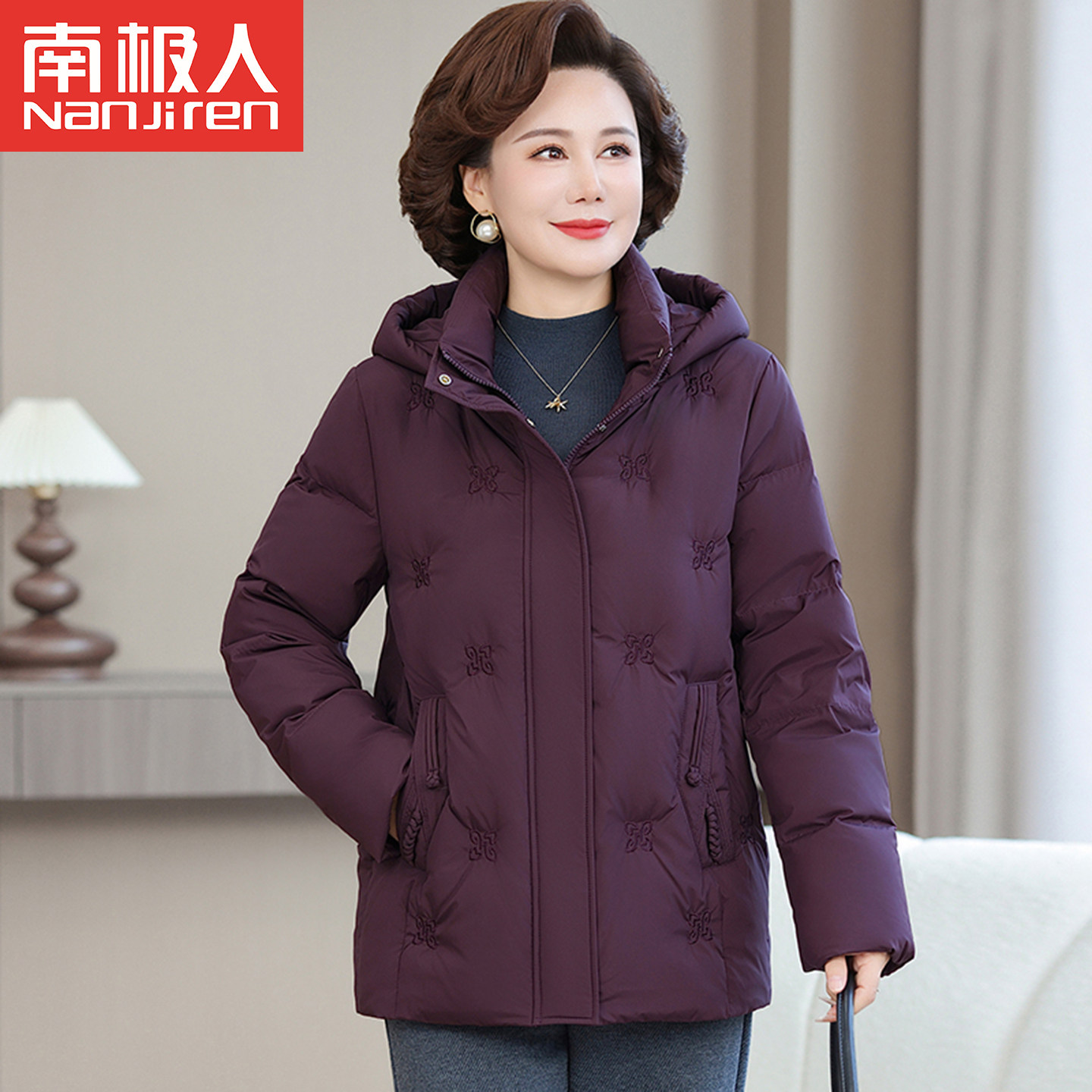 南极人新款冬季保暖妈妈羽绒服加厚休闲宽松中老年连帽白鸭绒外套