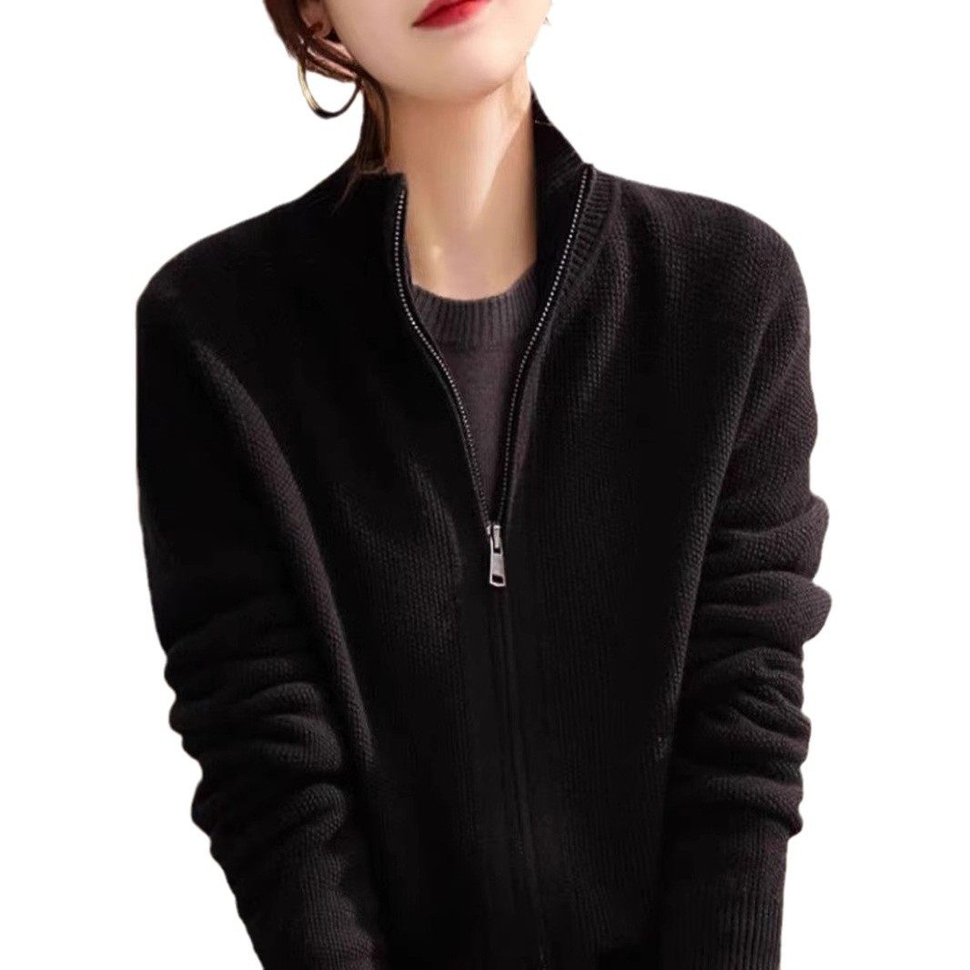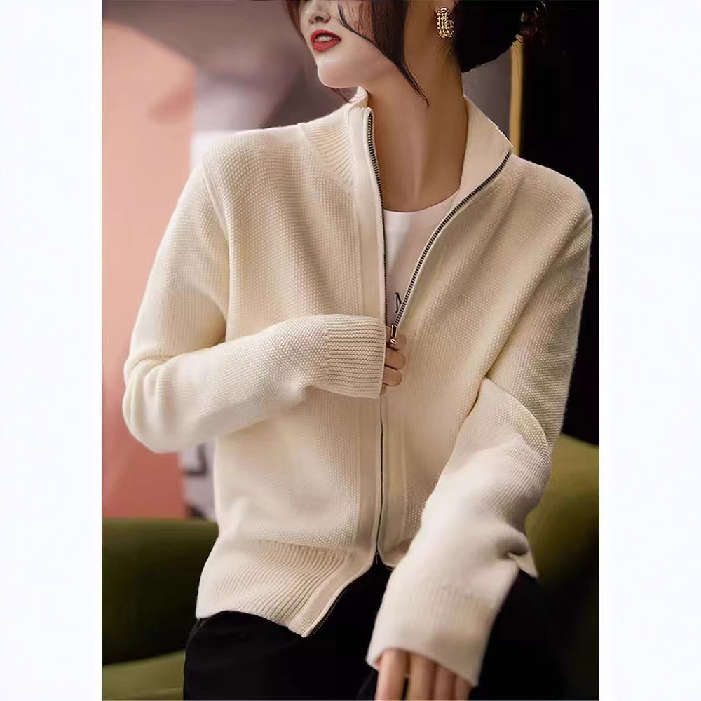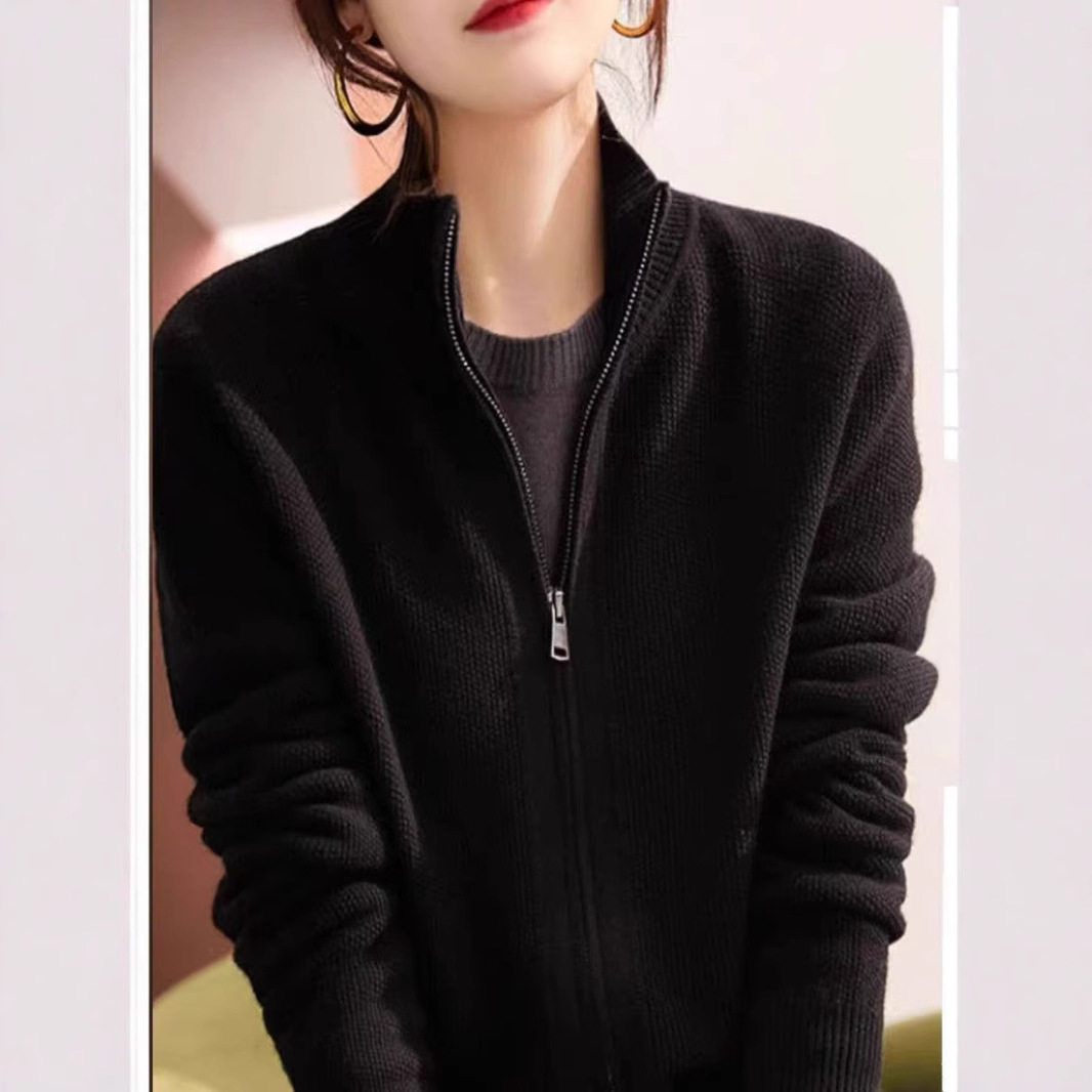 春秋新款半高领针织开衫外套女宽松拉链小众立领休闲时尚女式毛衣