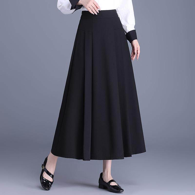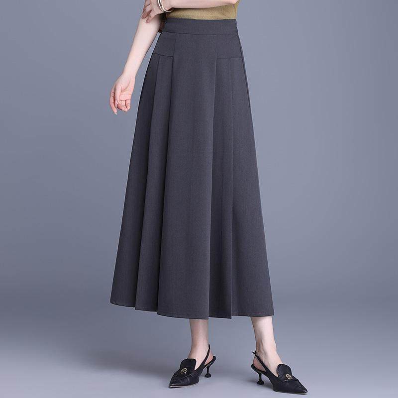 气质减龄长款半身裙女2026春季新款百褶遮肉显瘦高腰垂感A字裙子