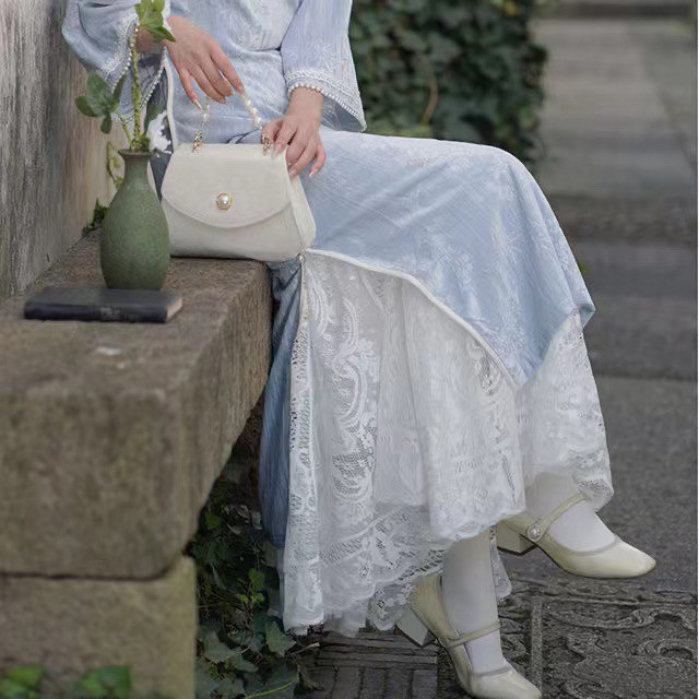 旗袍内衬裙新中式复古夏季薄款白色蕾丝a字裙旗袍专用鱼尾打底裙