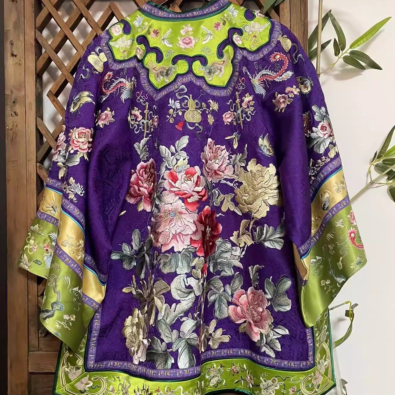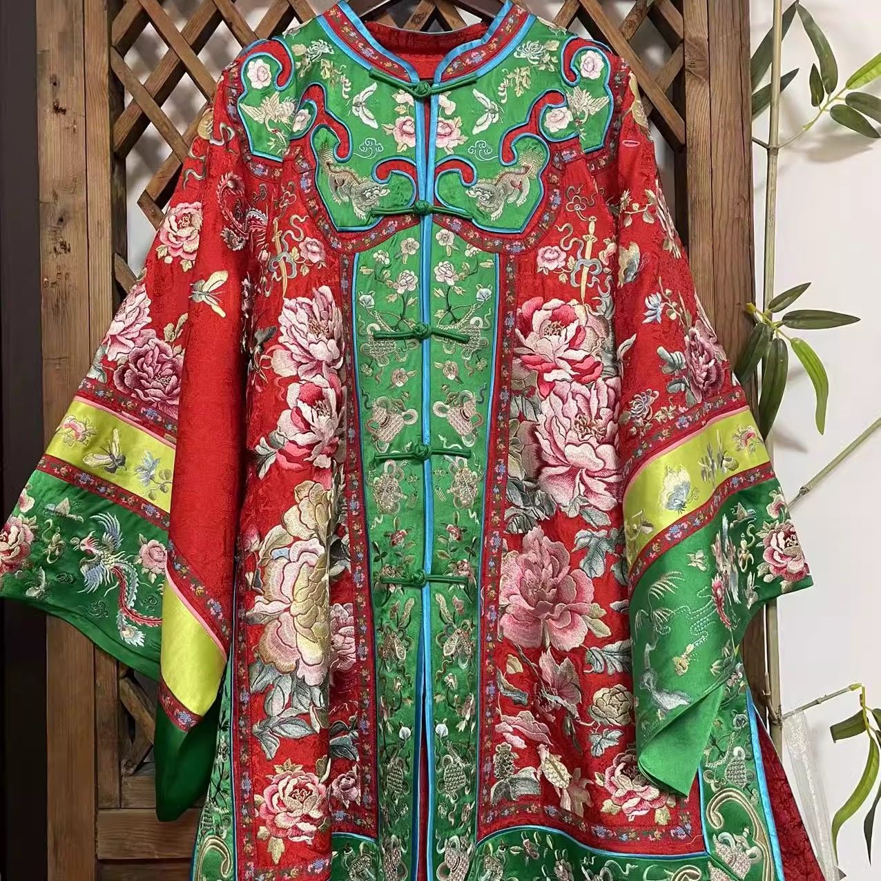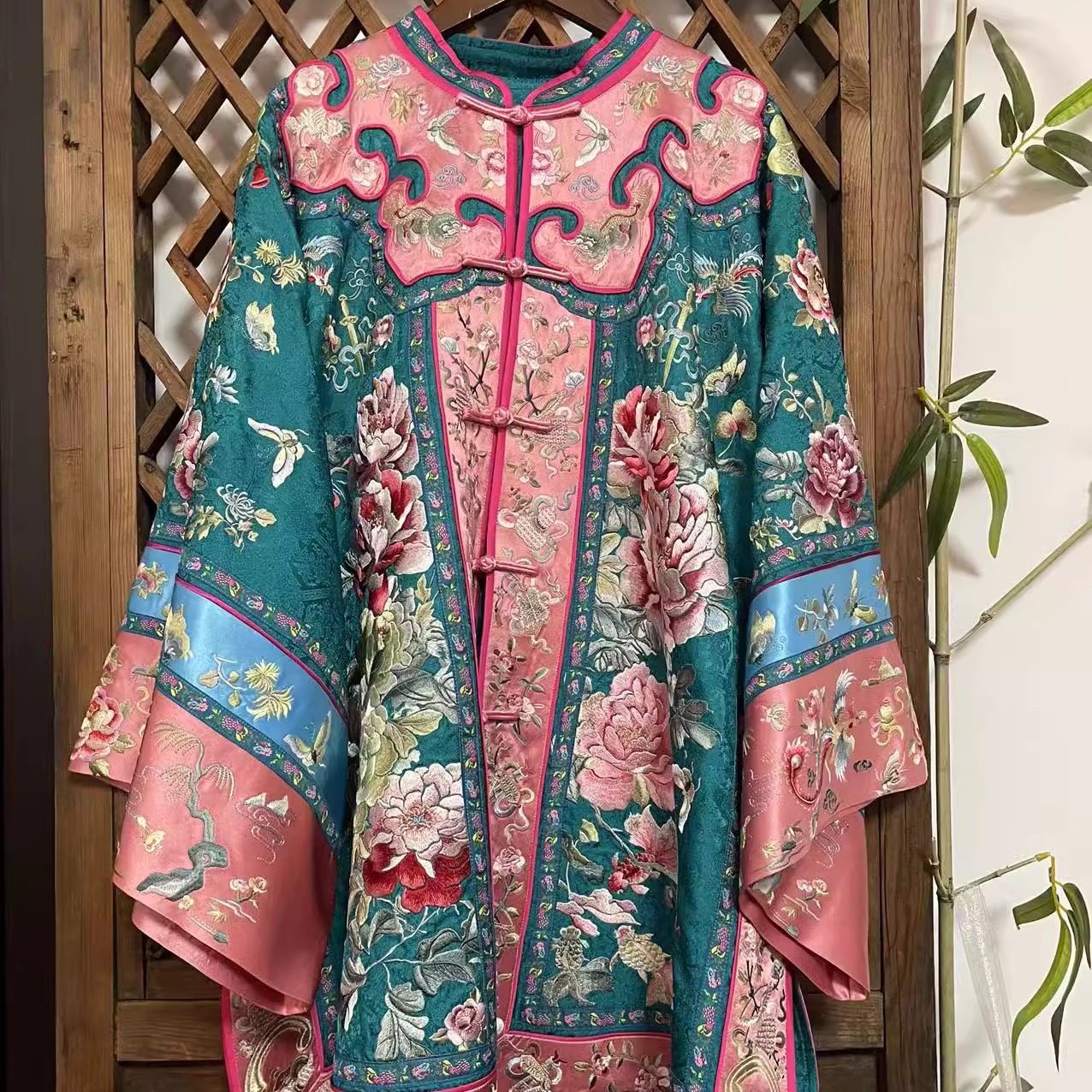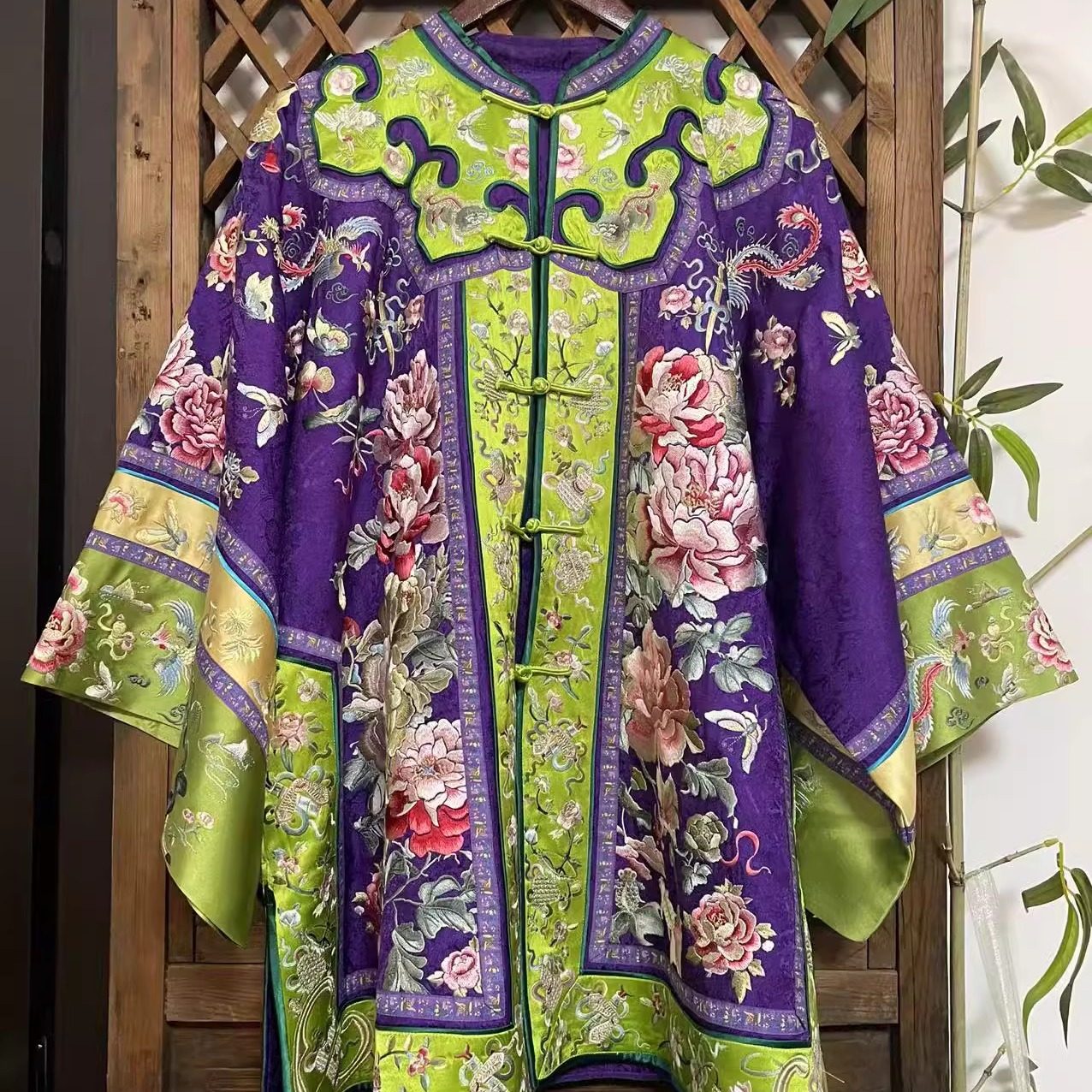 瑜玥传琦原创新款凤穿牡丹重工刺绣中开清汉服百花齐放香云纱上衣