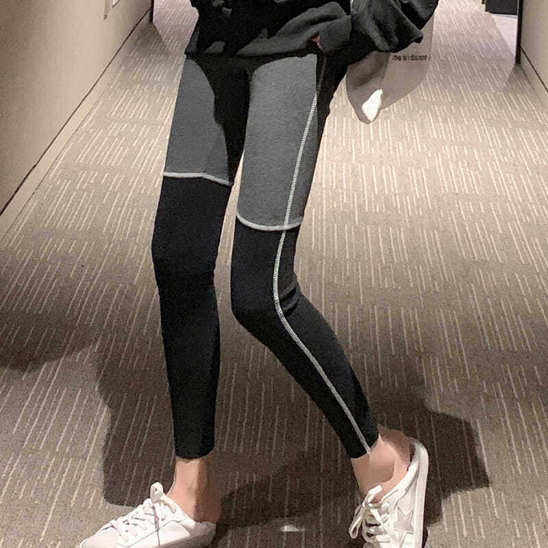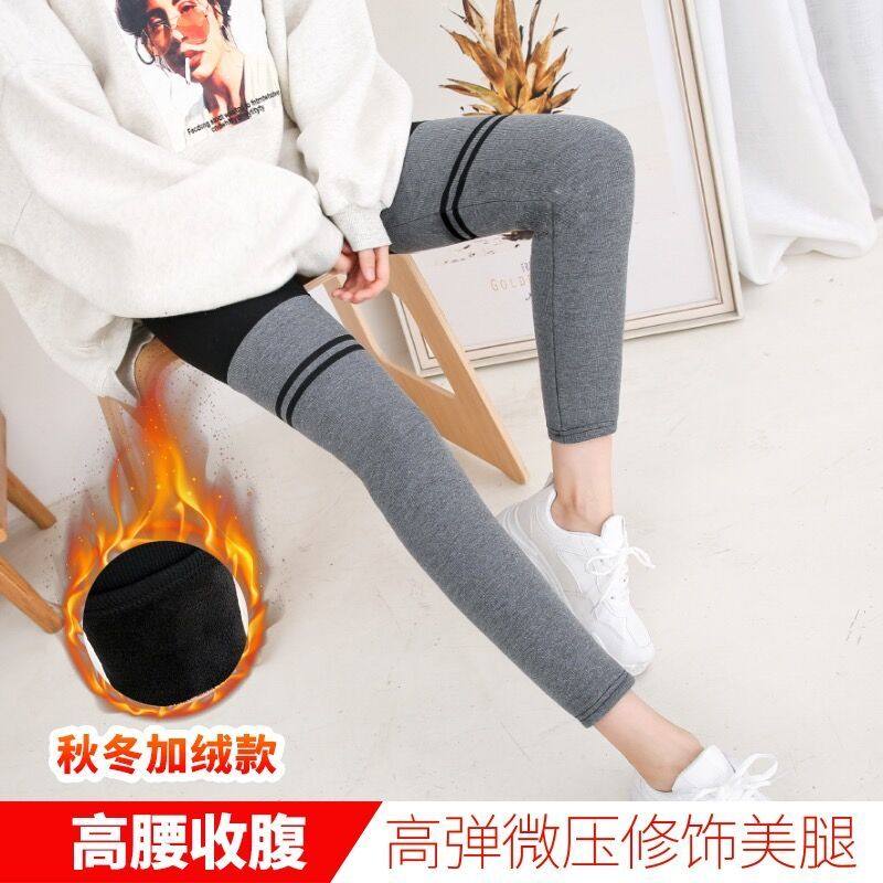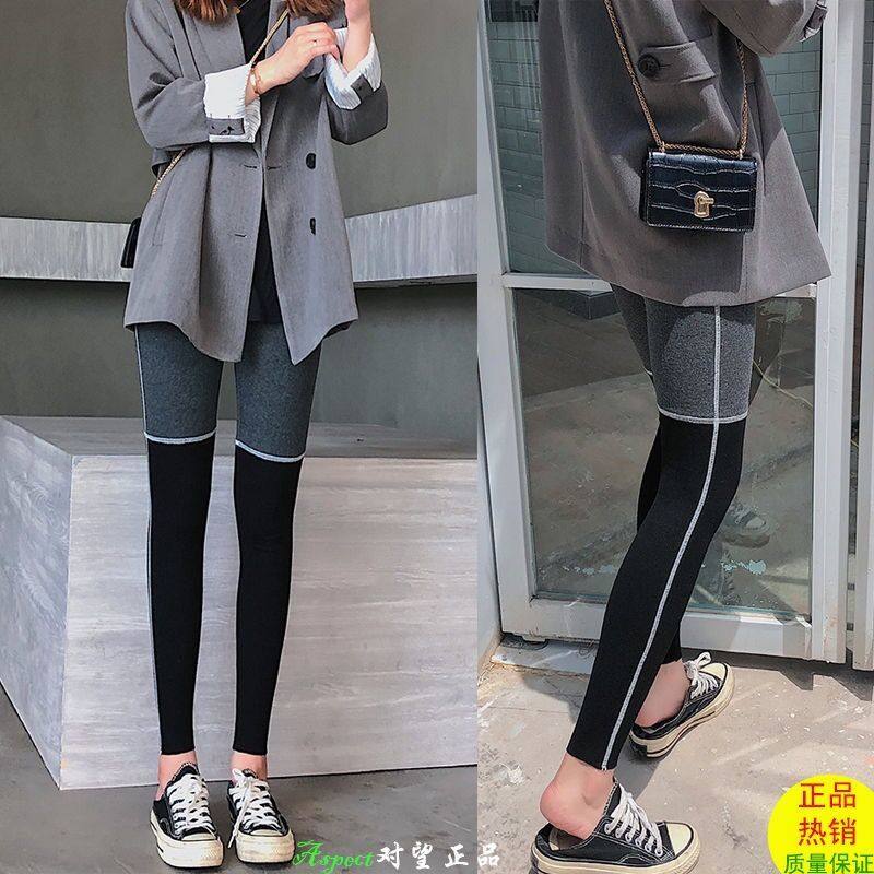韩版打底裤女外穿春秋季薄款拼接长裤螺纹秋裤高腰高弹显瘦小脚裤
