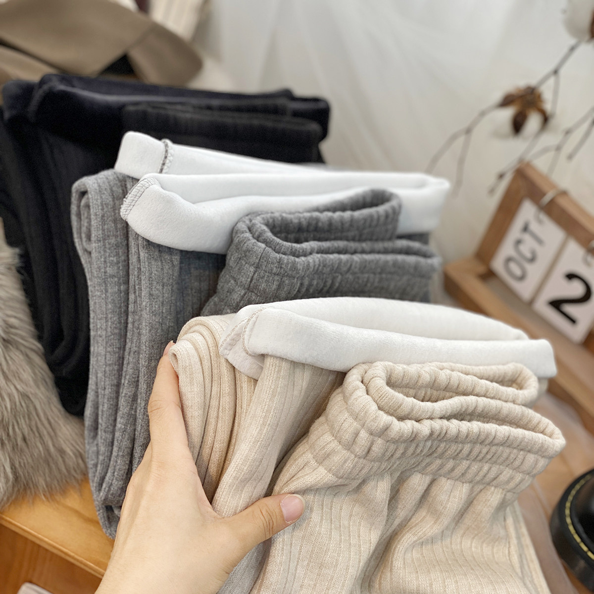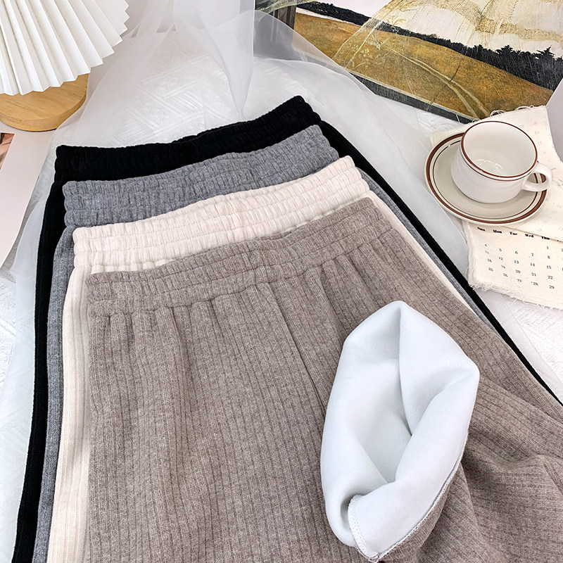 首页> 女装> 小个子145CM针织阔腿裤女加绒加厚坑条秋冬150XS拖地直筒休闲长裤