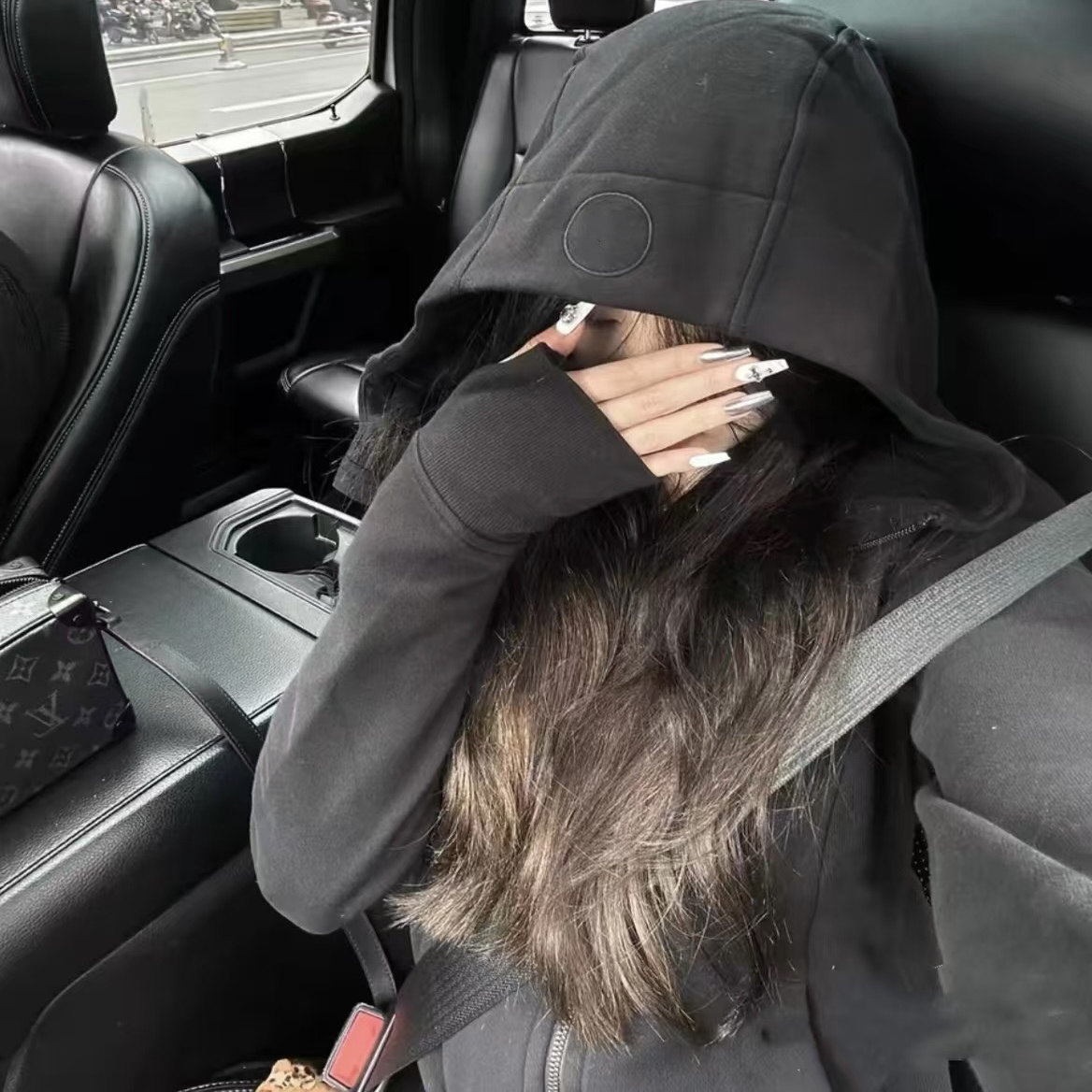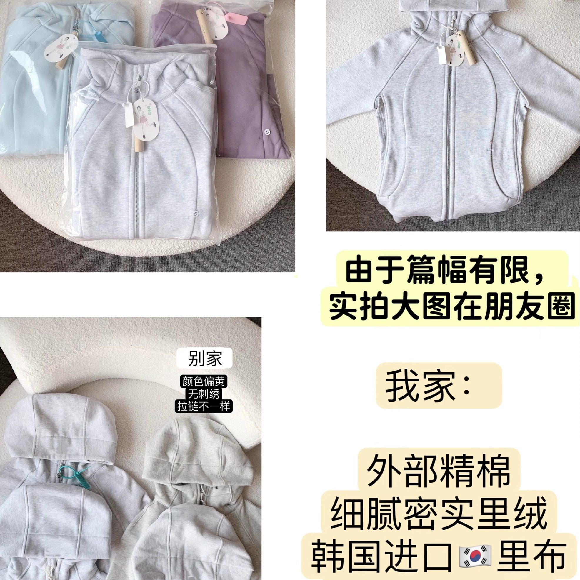 【陈小圆】韩国设计师修身版加绒卫衣浅灰黑连帽开衫韩国里布
