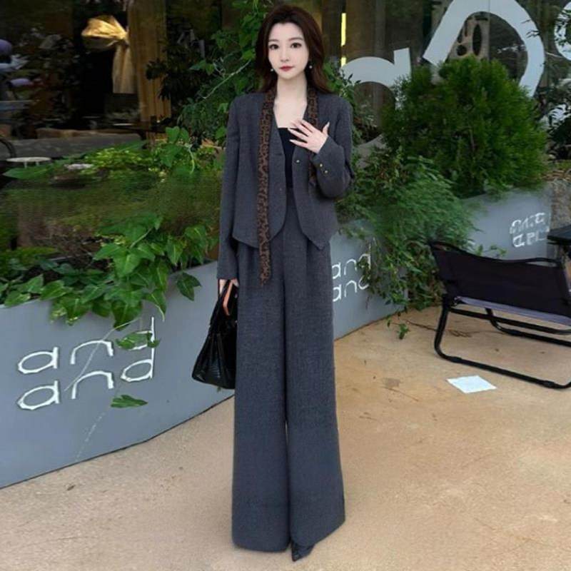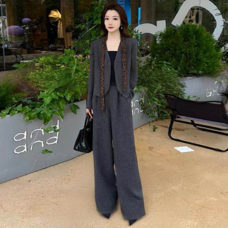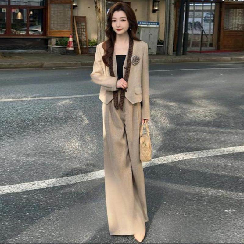 香港代购时尚气质套装女秋季新款显瘦短款外套阔腿裤时髦两件套潮