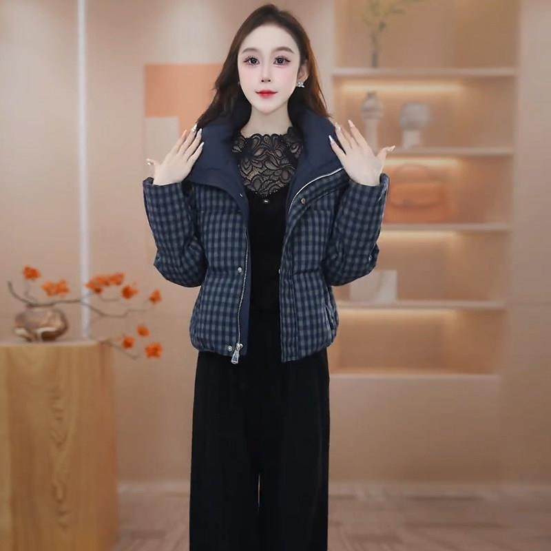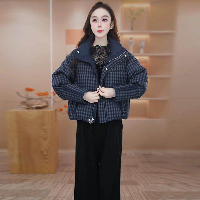 香港代购短款格子羽绒棉服女冬季新款保暖加厚立领棉衣棉袄外套潮