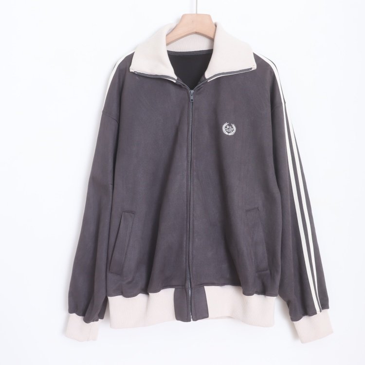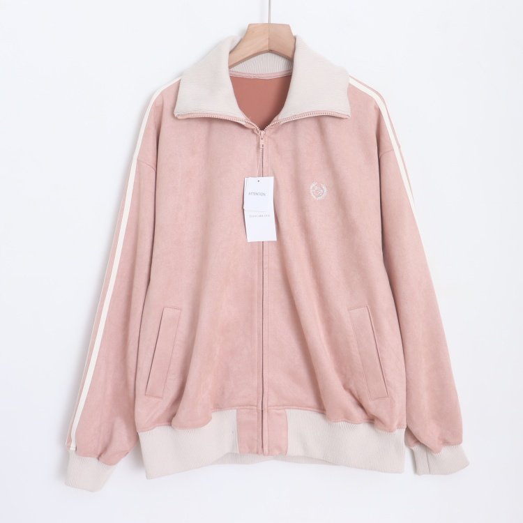 首页> 女装> D16014日单新款螺纹领拉链宽松显瘦女麂皮绒撞色有刺绣休闲外套