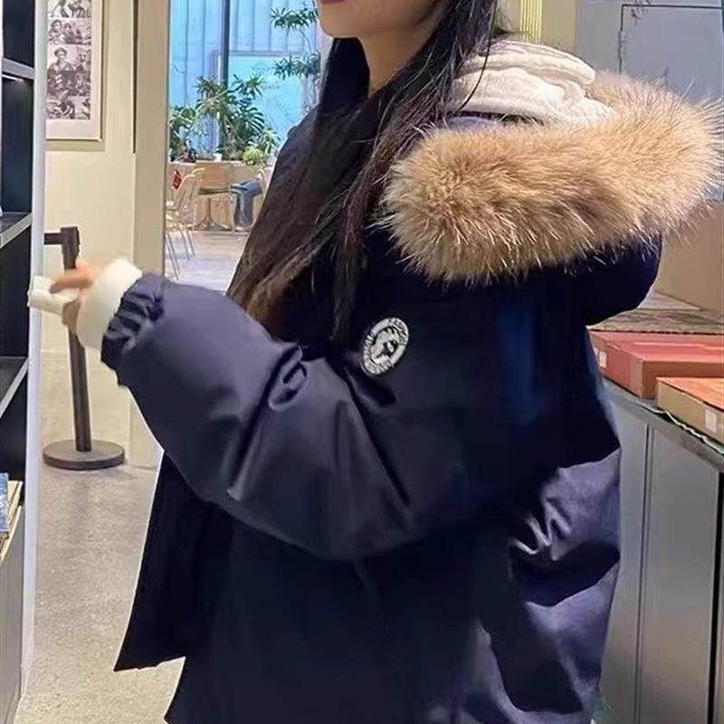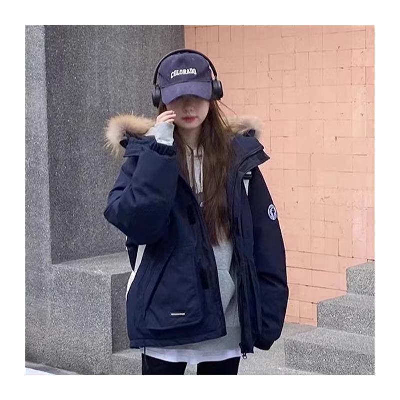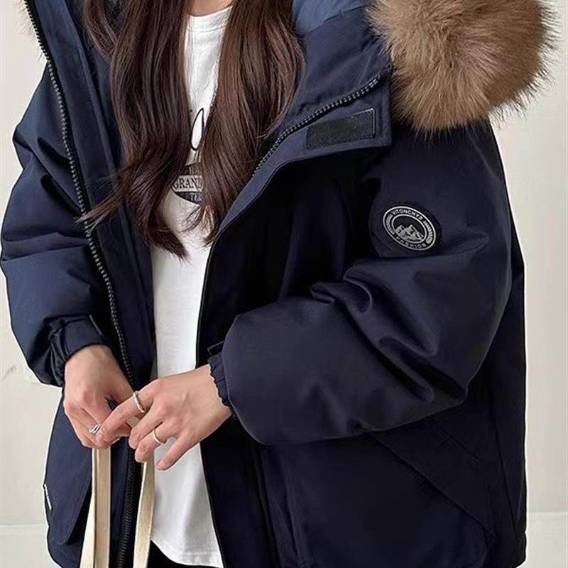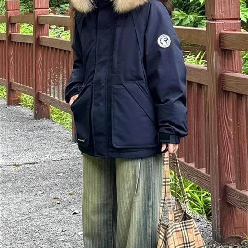 藏青色工装派克棉服男女款冬季中性风毛领棉衣外套韩系慵懒风棉袄