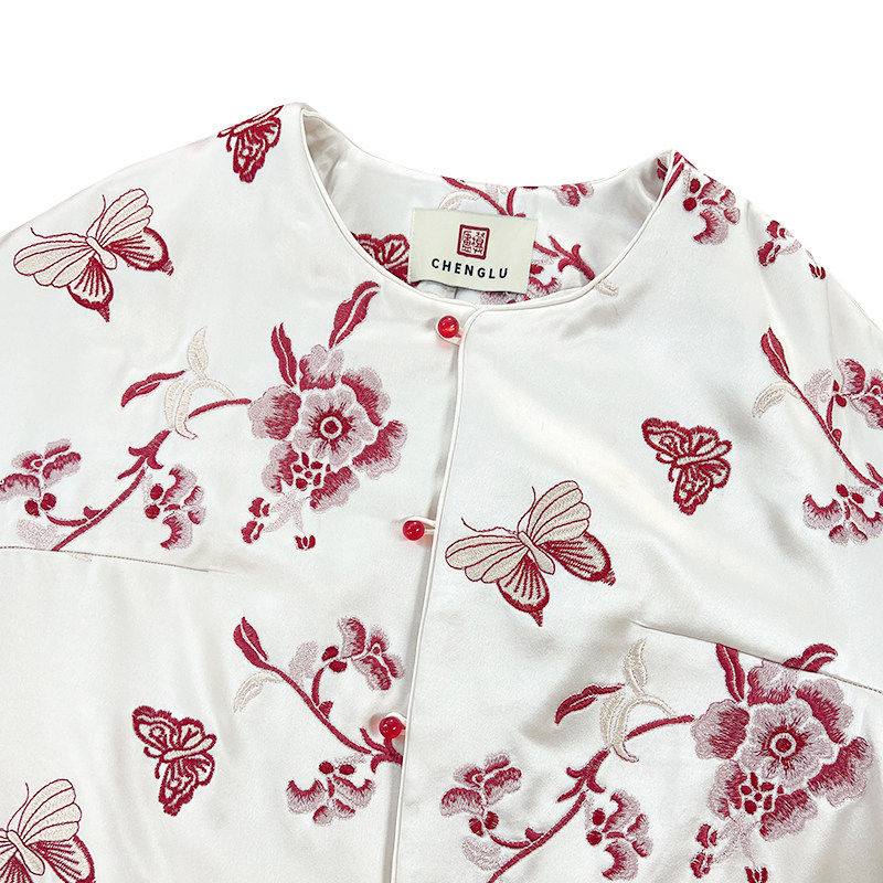 【橙庐】443028原创新中式蝴蝶牡丹重工刺绣毛袖夹毛棉服 女外套