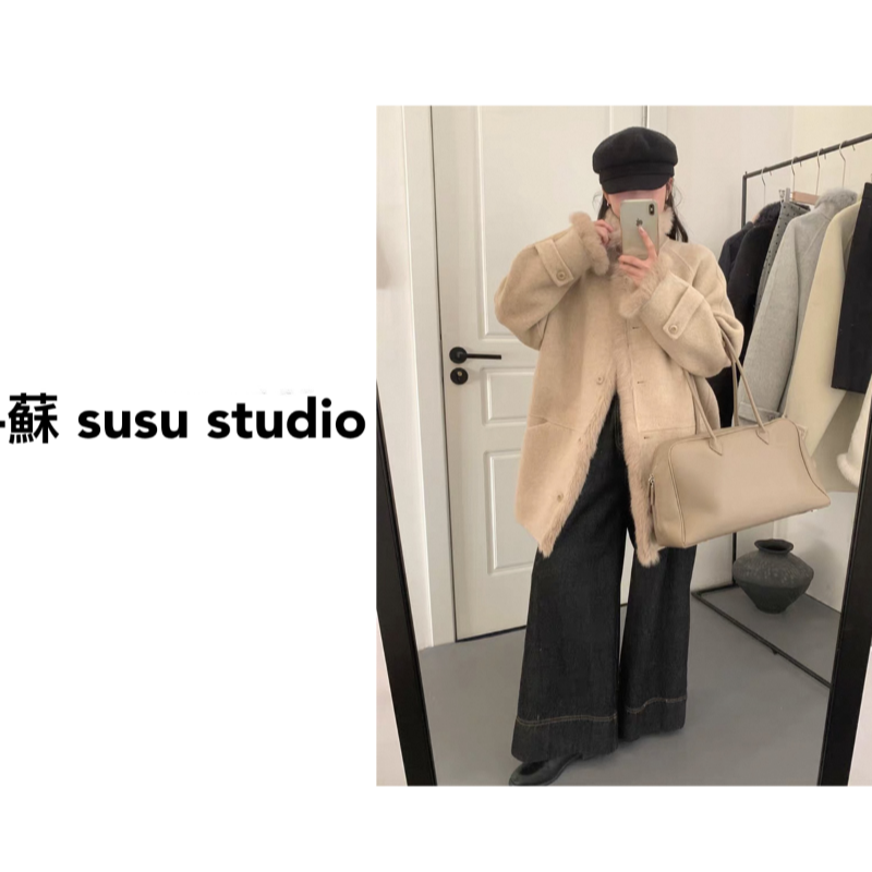 SU 拼接边立领羊毛双面呢大衣女2025秋冬新中长款毛呢外套I0010