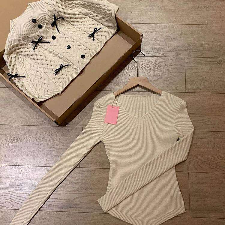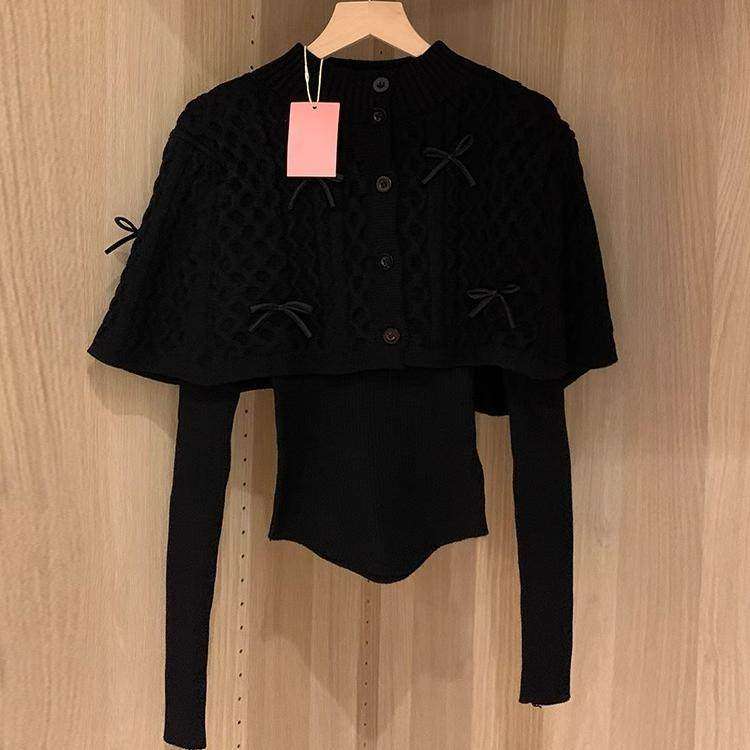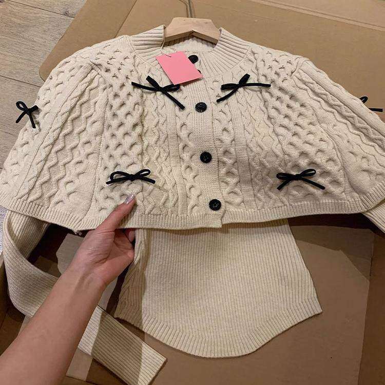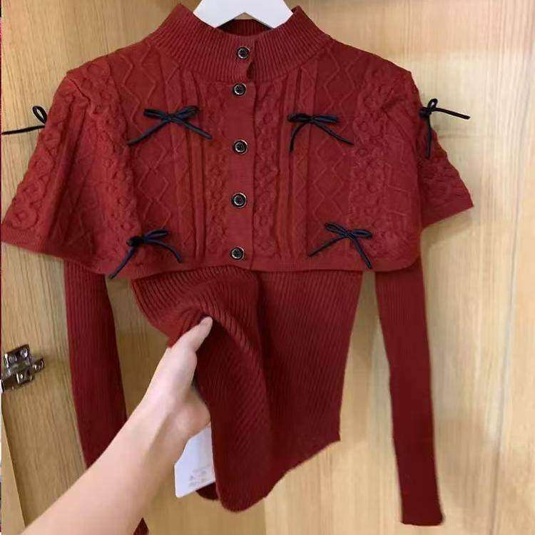 秋冬通勤风红色长袖蝴蝶结毛衣套装 2024新款两件式保暖毛衣