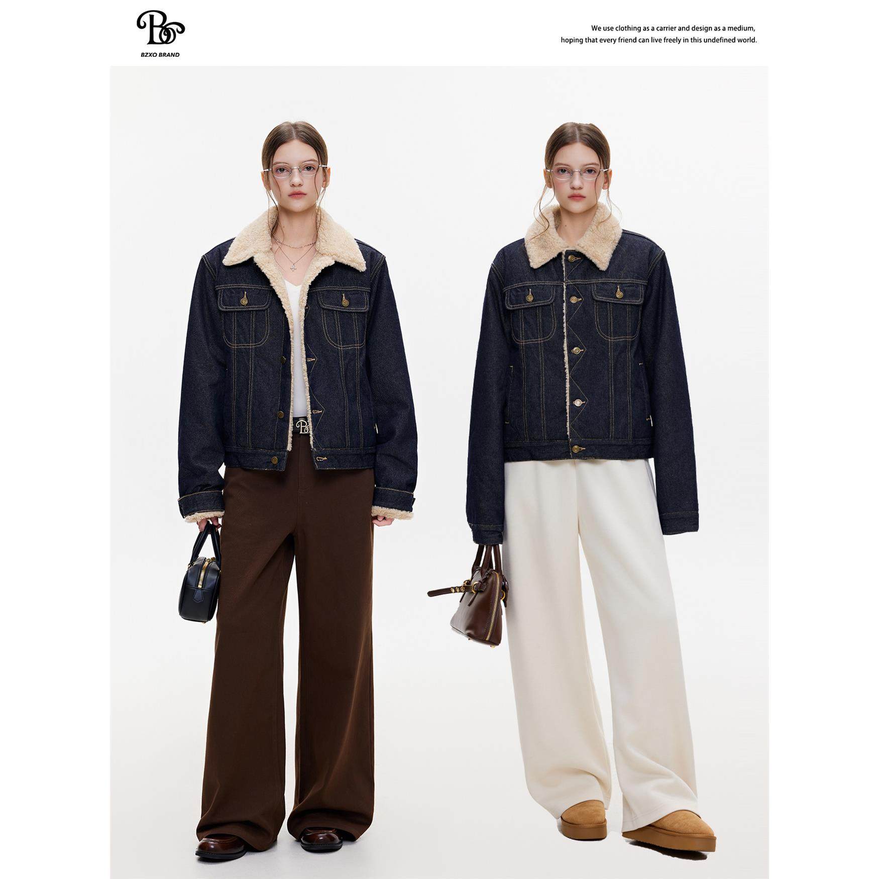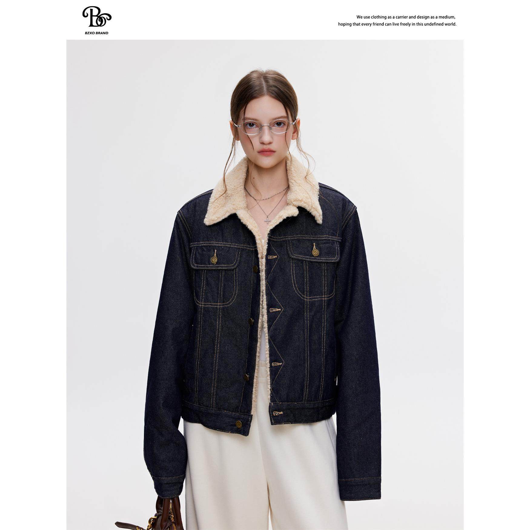 BZXO高级感牛仔羊羔毛外套女冬季新款加绒加厚宽松显瘦夹克上衣服