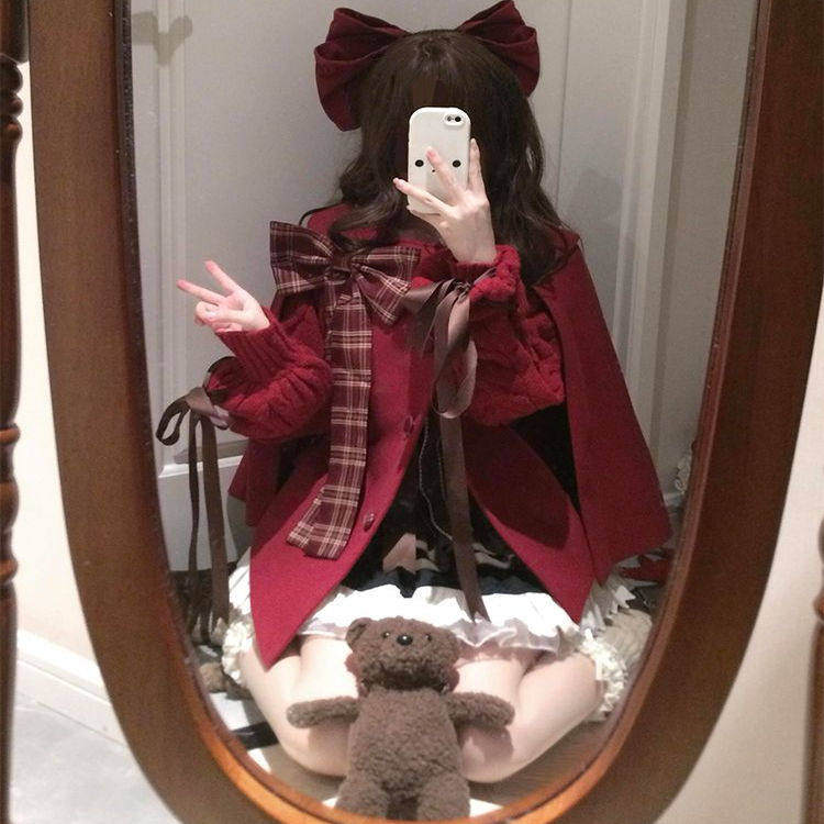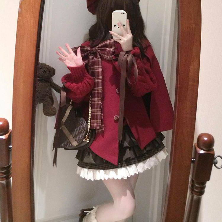 首页> 女装> 小个子圣诞氛围感蝴蝶结毛呢外套女秋冬季新款格纹蛋糕短裙两件套