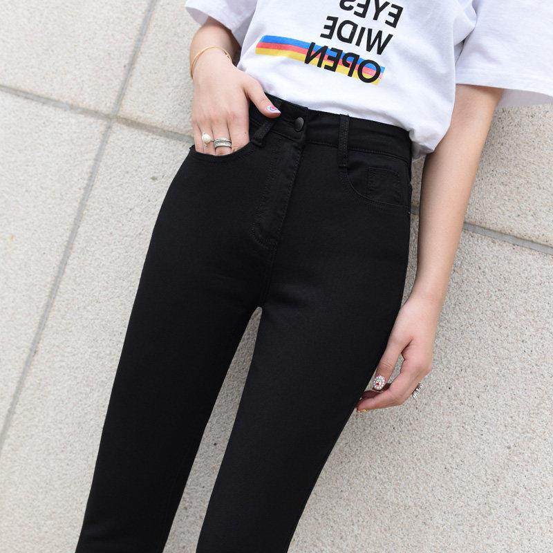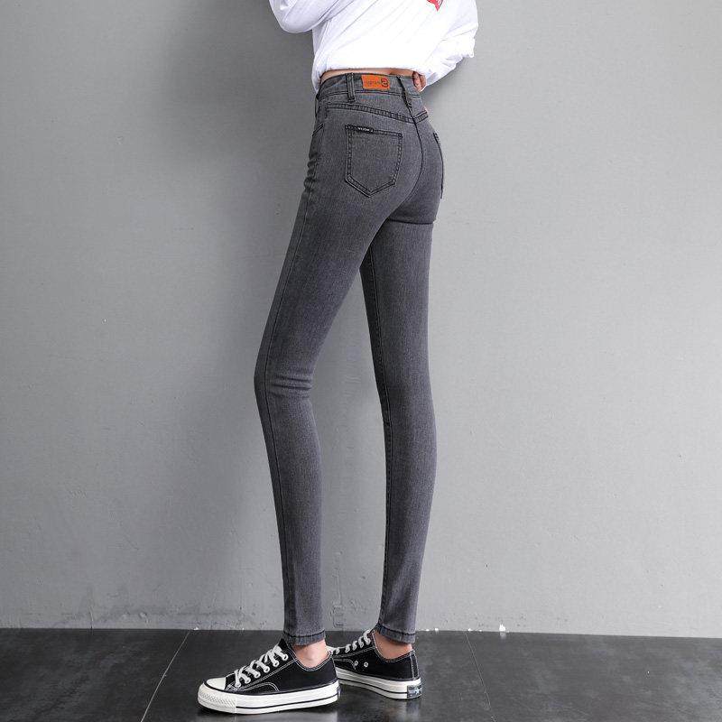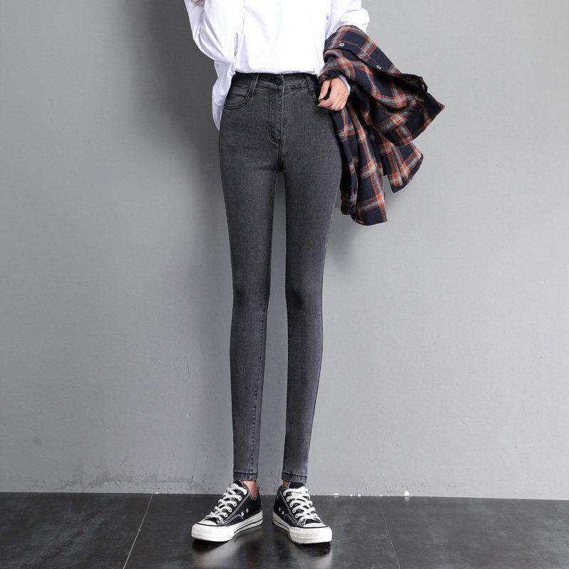 首页> 女装> 烟灰色加绒牛仔裤女高腰显瘦秋冬弹力紧身窄管裤九分铅笔修身长裤