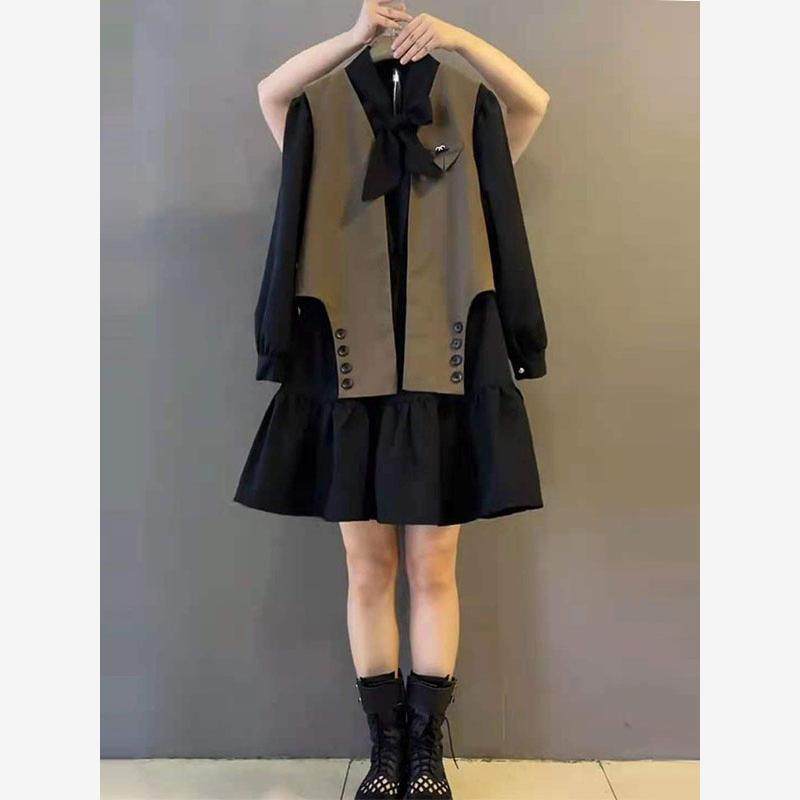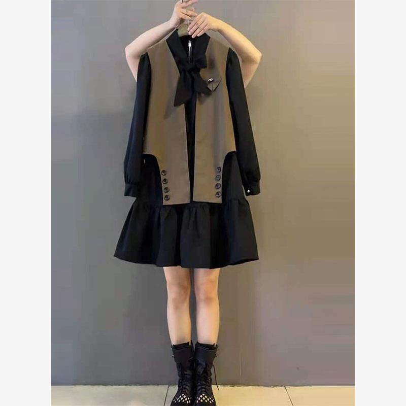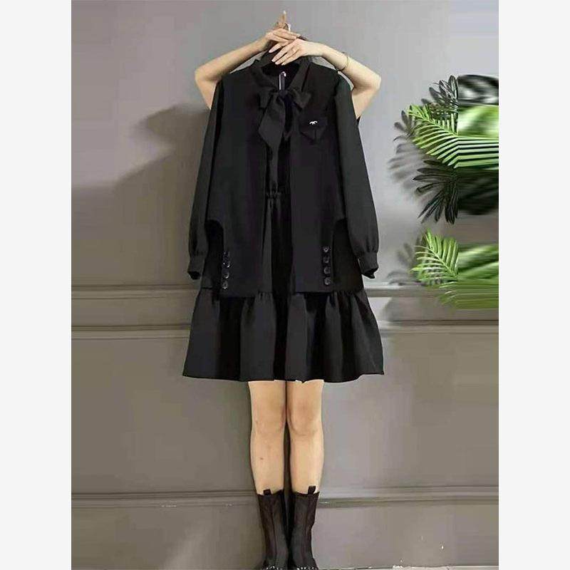 胖姐姐2025秋季新加码女装腹部覆盖瘦身西装背心连衣裙时尚两件套
