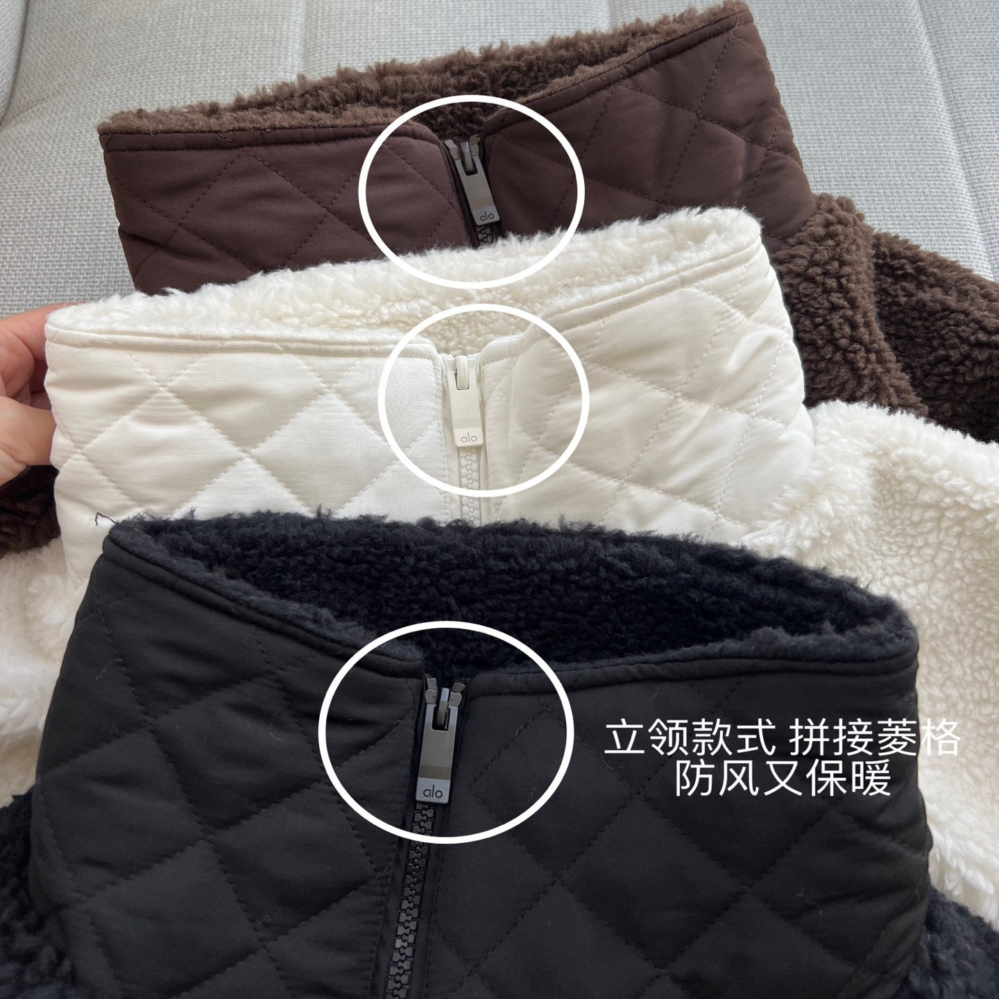 【aIo官网正确原标】高端羊羔毛拉链肯豆立领外套加厚拼接上衣