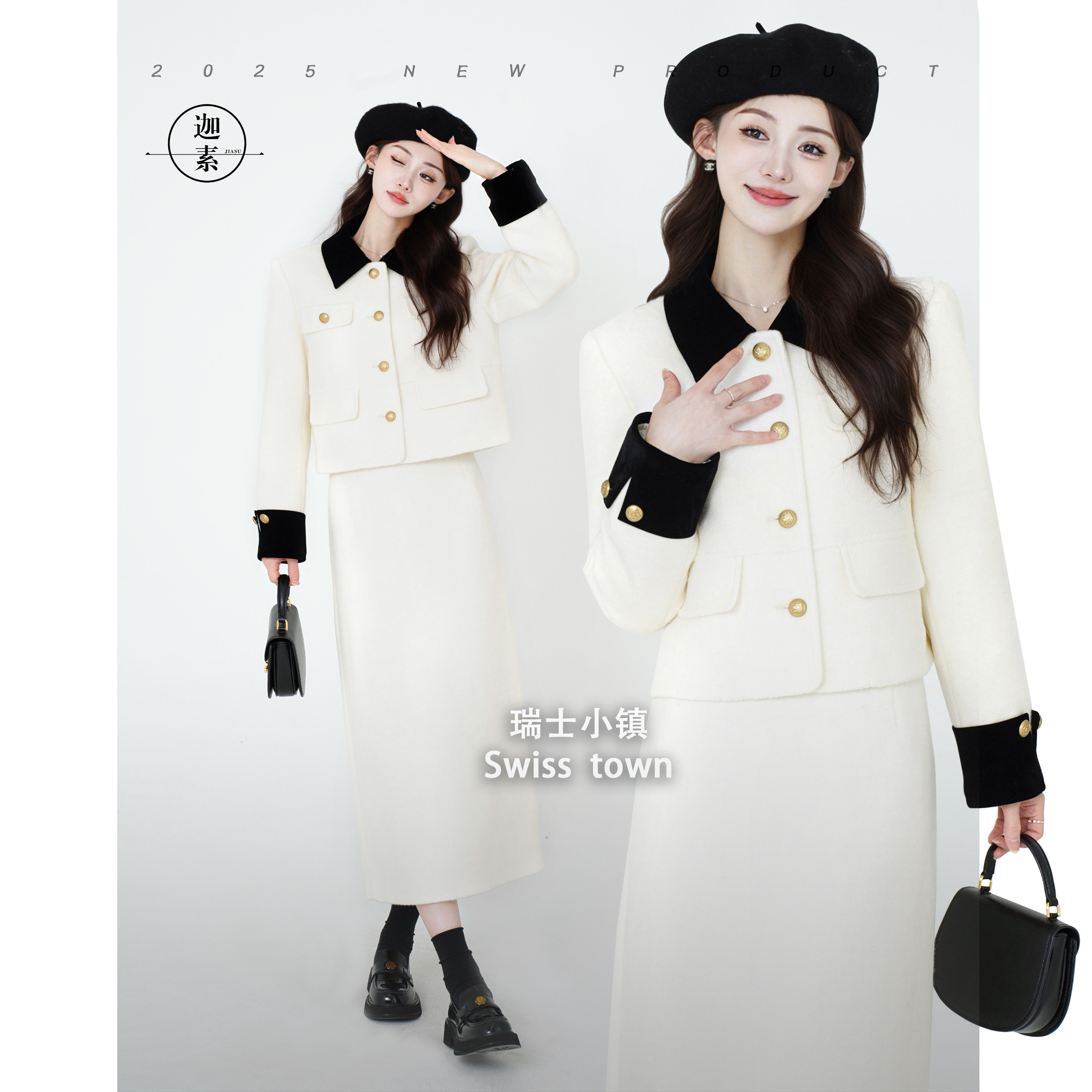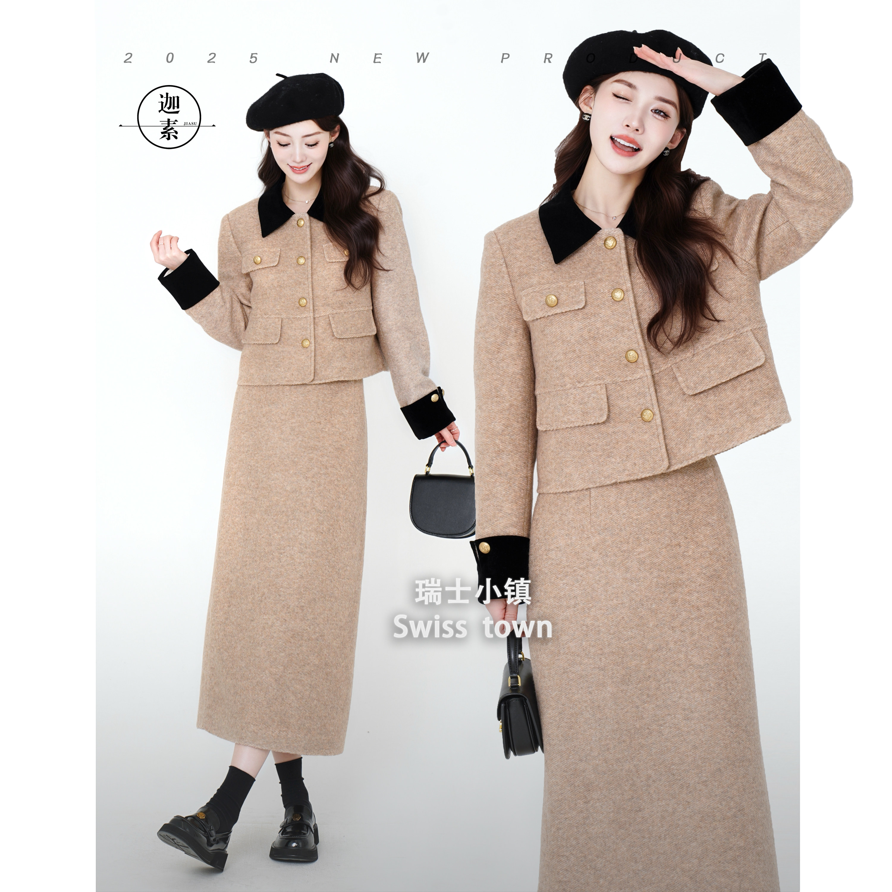JIASU 【瑞士小镇】2025新时尚松弛感时双呢小香风羽绒套装S581