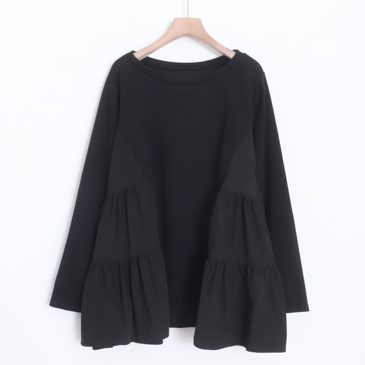 D08053日单秋新款圆领套头宽松显瘦女通勤气质中长款拼接针织毛衣
