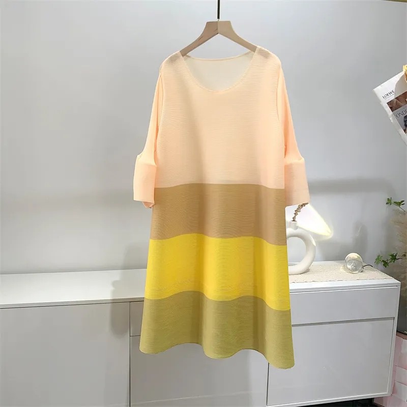 00后褶皱连衣裙女设计感小众撞色气质大码女宽松装裙