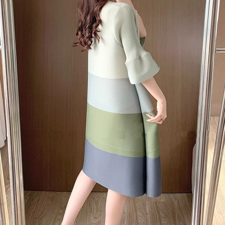 首页> 女装> 00后褶皱连衣裙女设计感小众撞色气质大码女宽松装裙