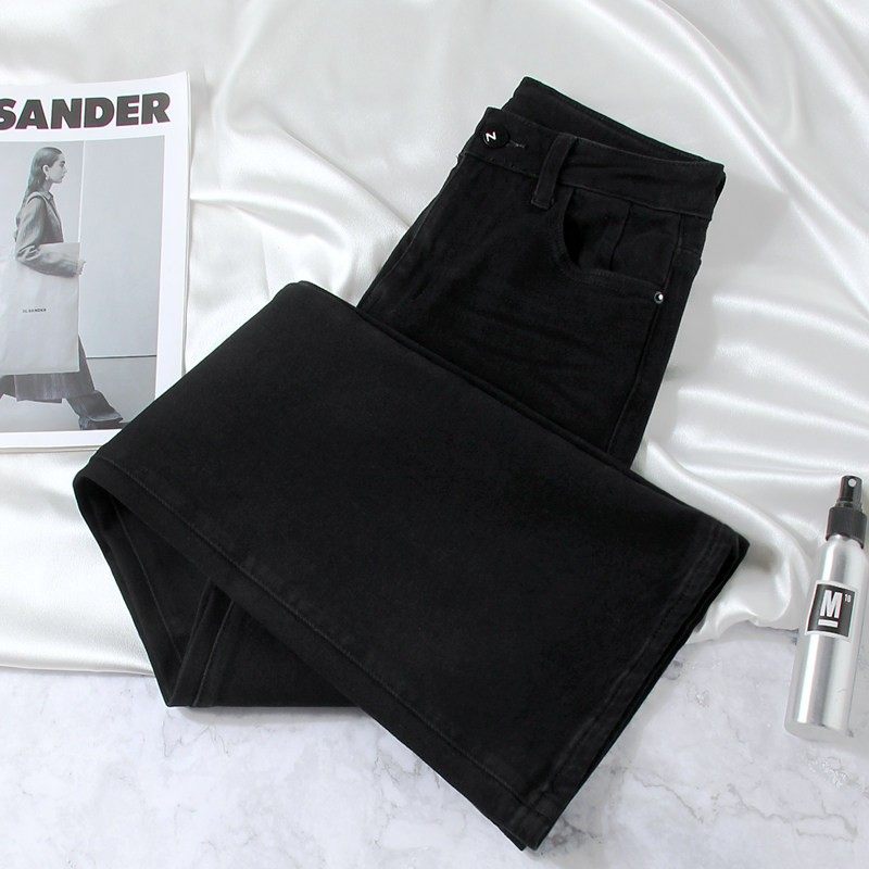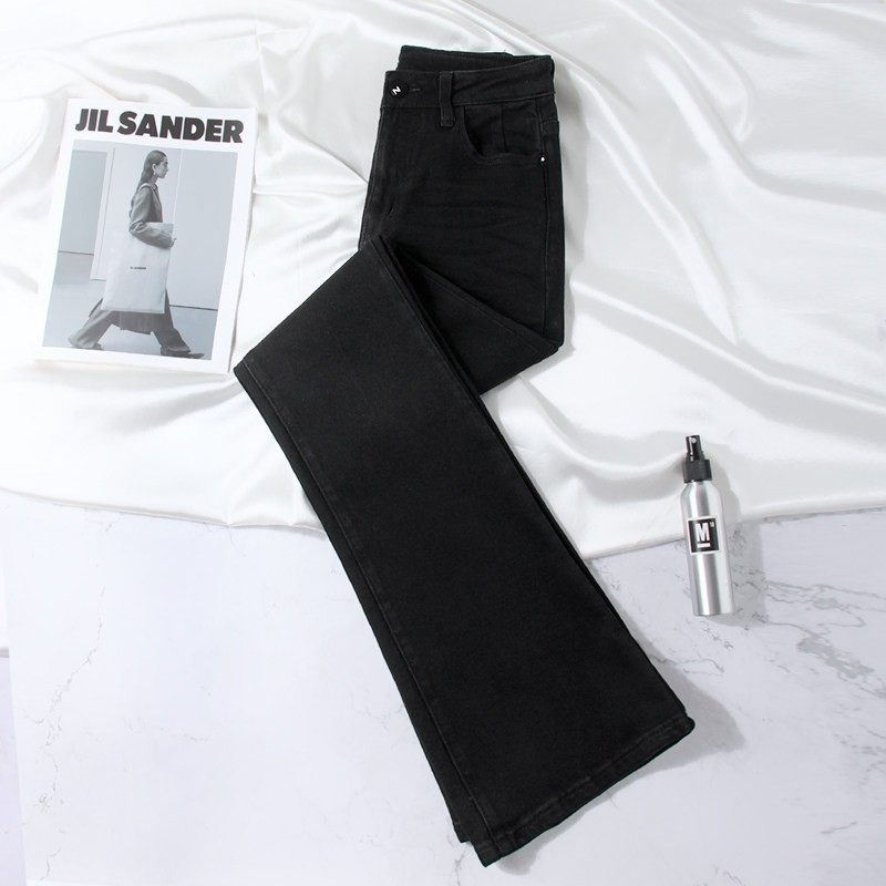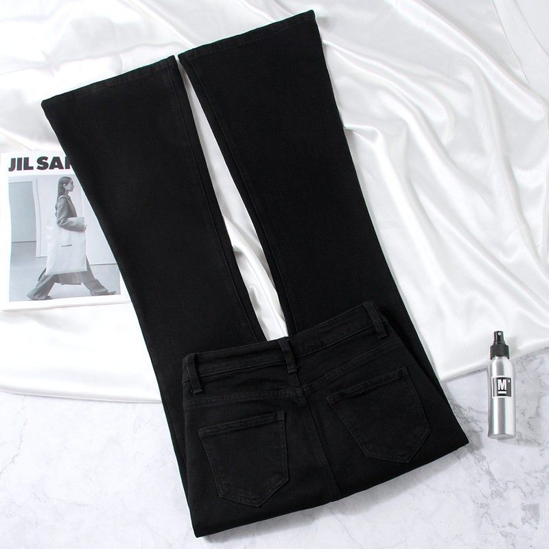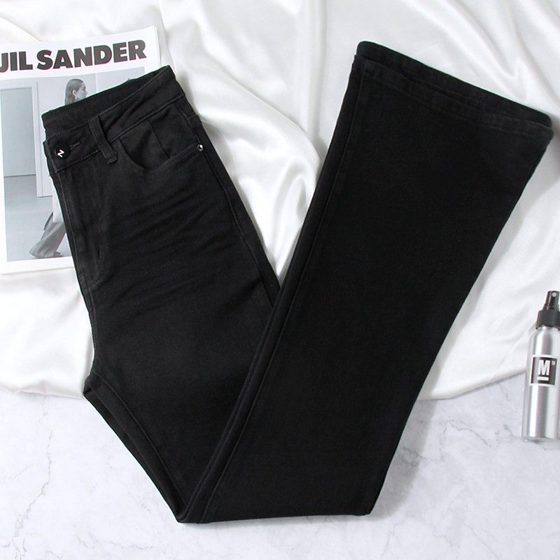 黑色微喇牛仔裤女高腰显瘦弹力秋冬新款小个子九分喇叭马蹄长裤子