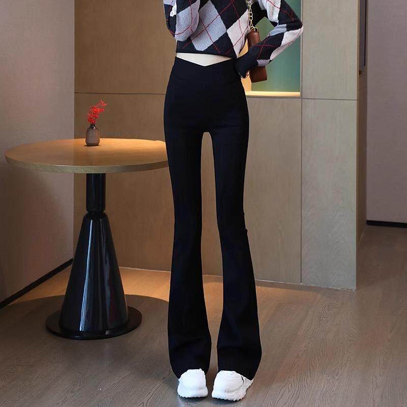 首页> 女装> 黑色开叉微喇叭裤女加绒2025新爆款春秋外穿高腰垂感小个子马蹄裤