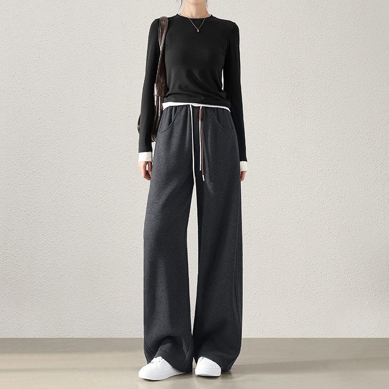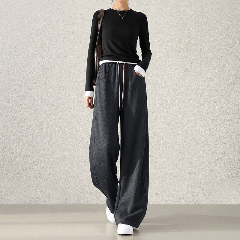 灰色运动裤女春秋季直筒宽松卫裤休闲裤子高个子加长版香蕉阔腿裤