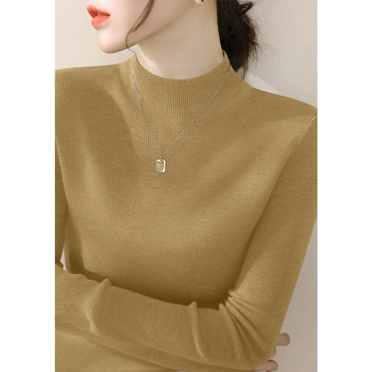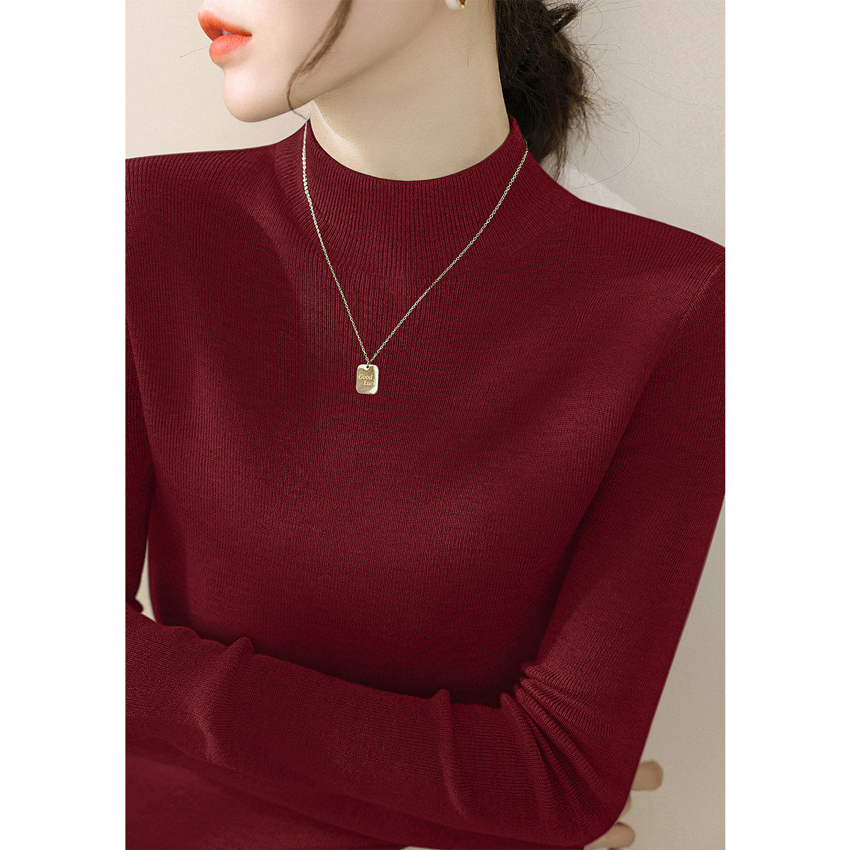 2025年秋冬新款女装深灰色半高领毛衣内搭打底上衣修身长袖针织衫