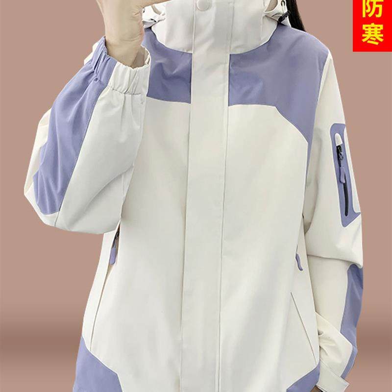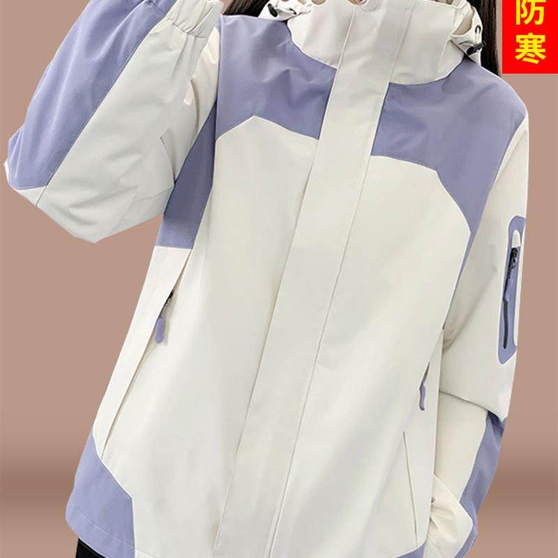 冲锋衣女2025新款秋冬户外大码拼接外套可拆卸三合一防水登山服男
