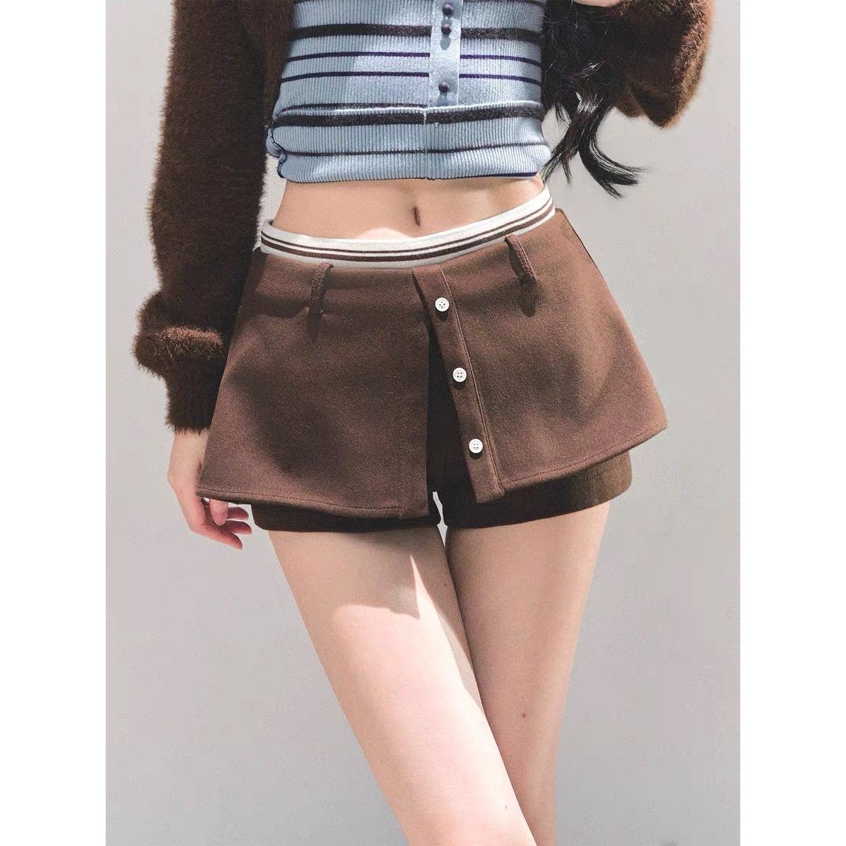 韩系减龄学院风低腰显瘦半身裙裤秋冬辣妹时尚设计感A字裙QD61303