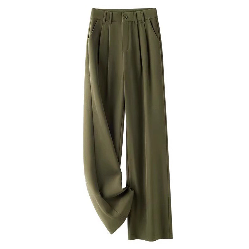 首页> 女装> 啄木鸟咸菜绿窄版阔腿裤女秋季高腰垂感休闲宽松气质西装直筒裤