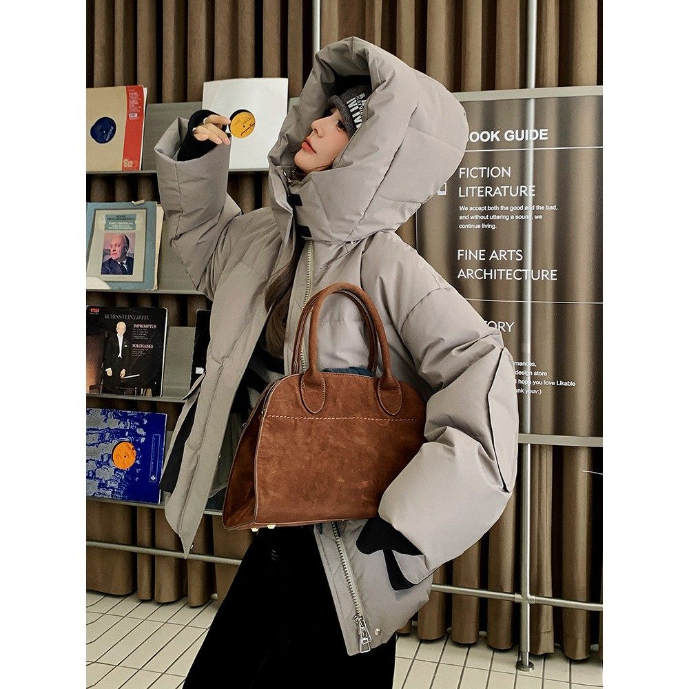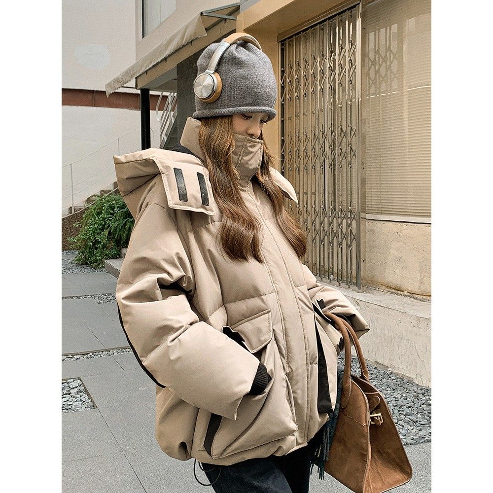 卡其色加厚保暖连帽羽绒服女2025冬季新款宽松休闲90白鸭绒厚外套