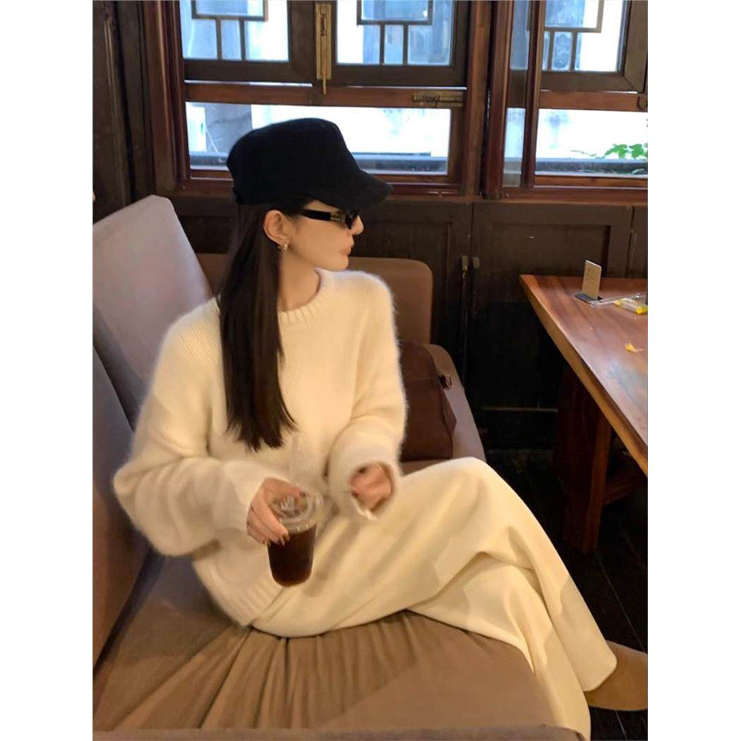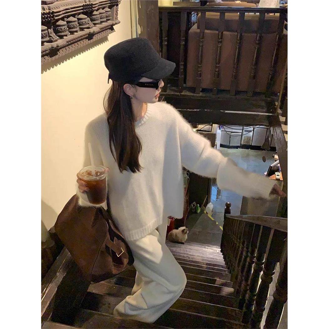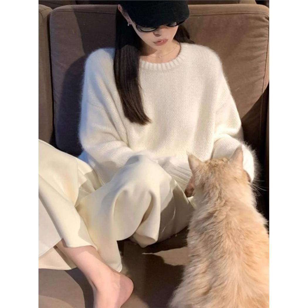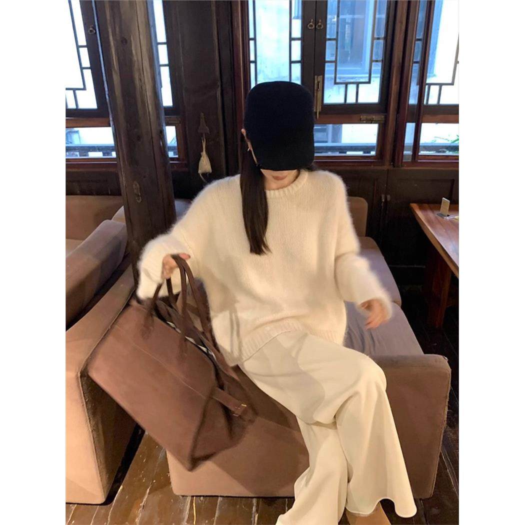 白色水貂绒套头针织衫毛衣女秋冬内搭高级感慵懒软糯加厚打底上衣