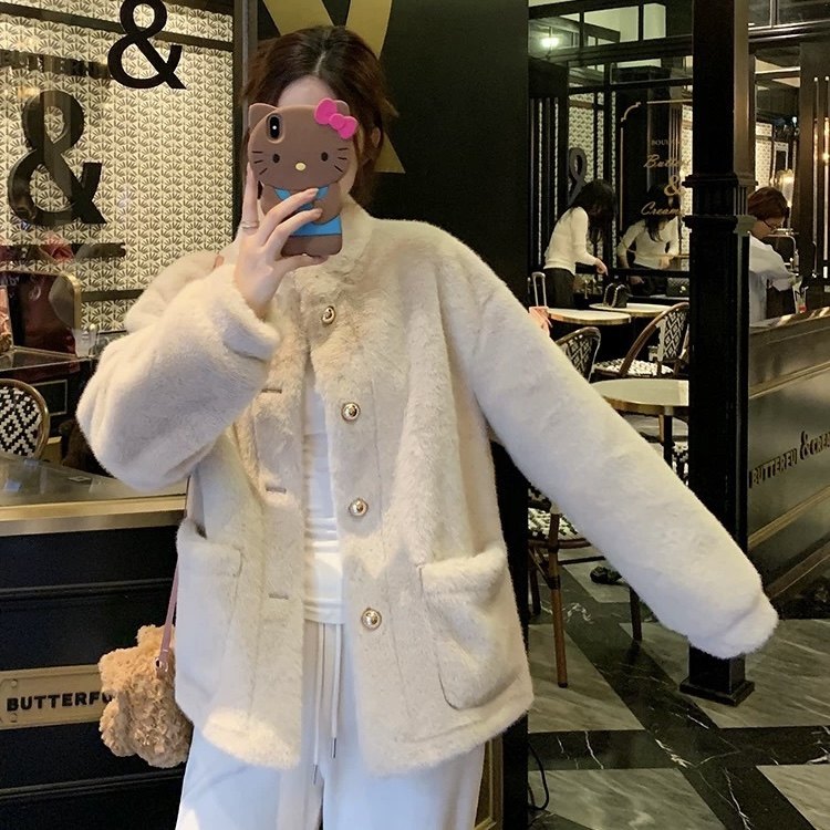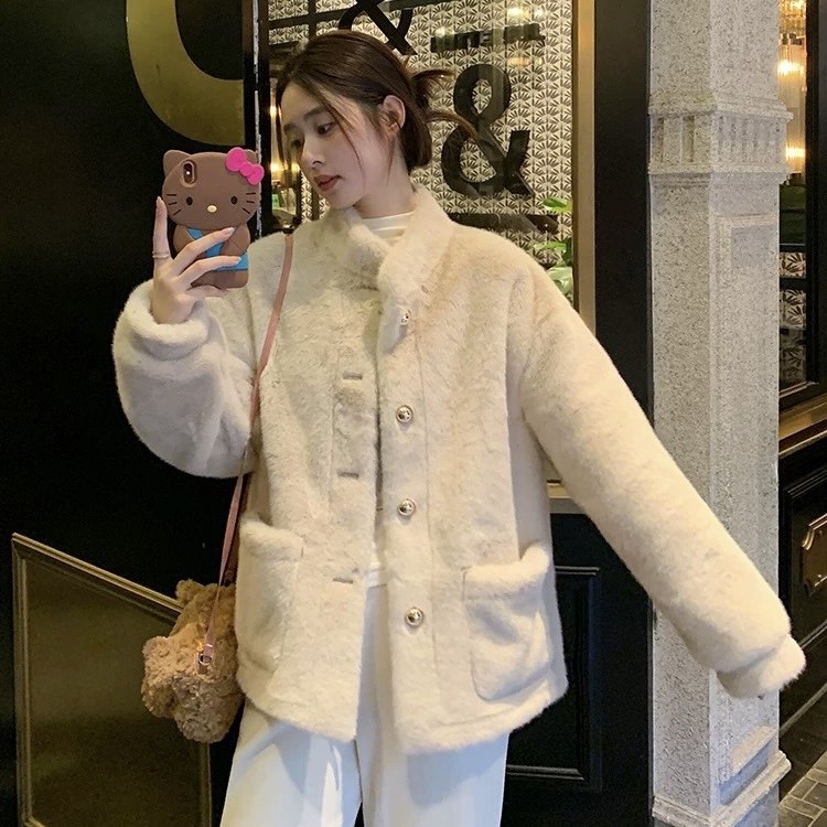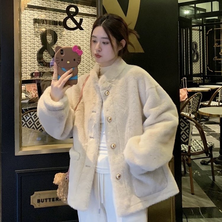 立领小香风仿水貂毛绒冬季环保皮草女2025新款高级感上衣兔毛外套