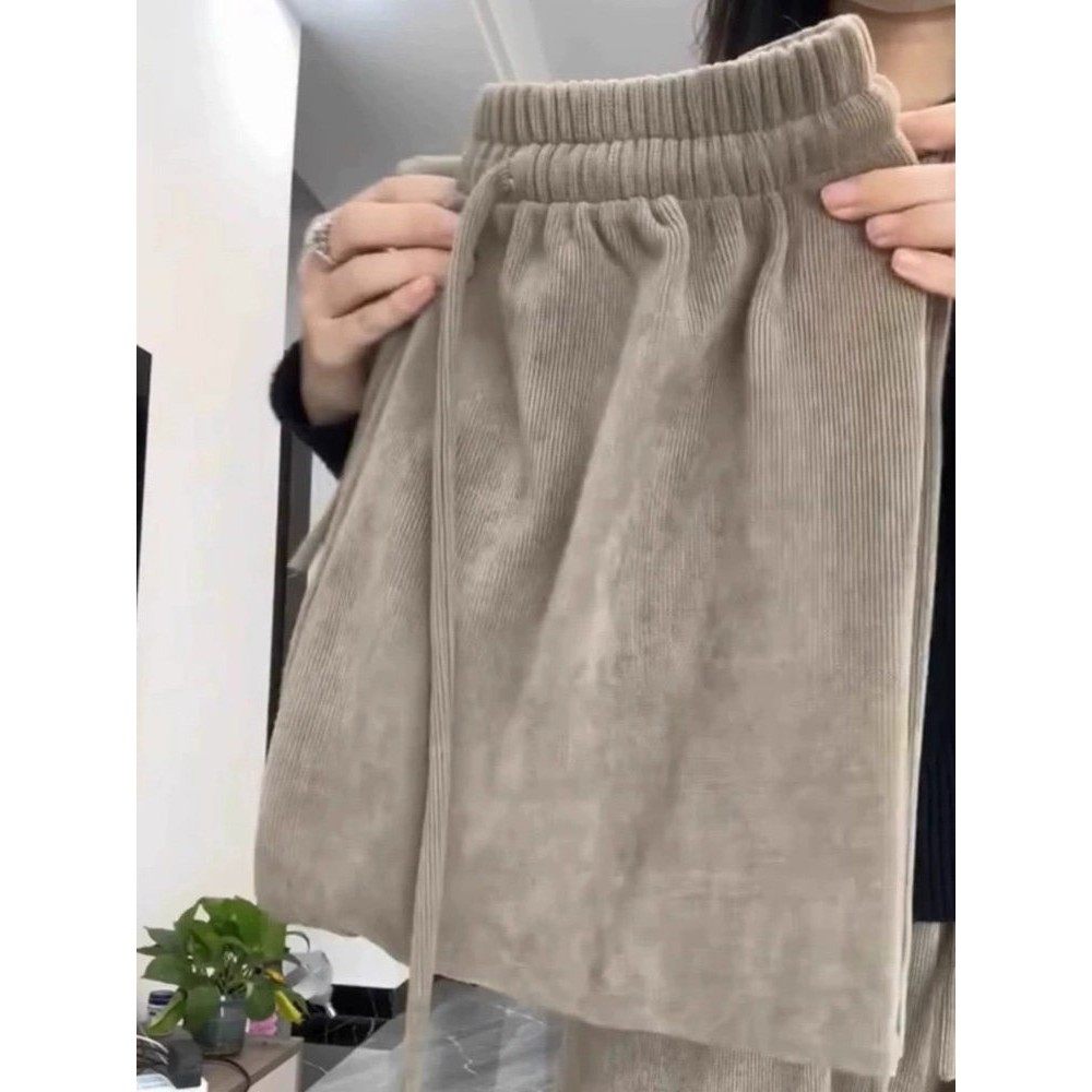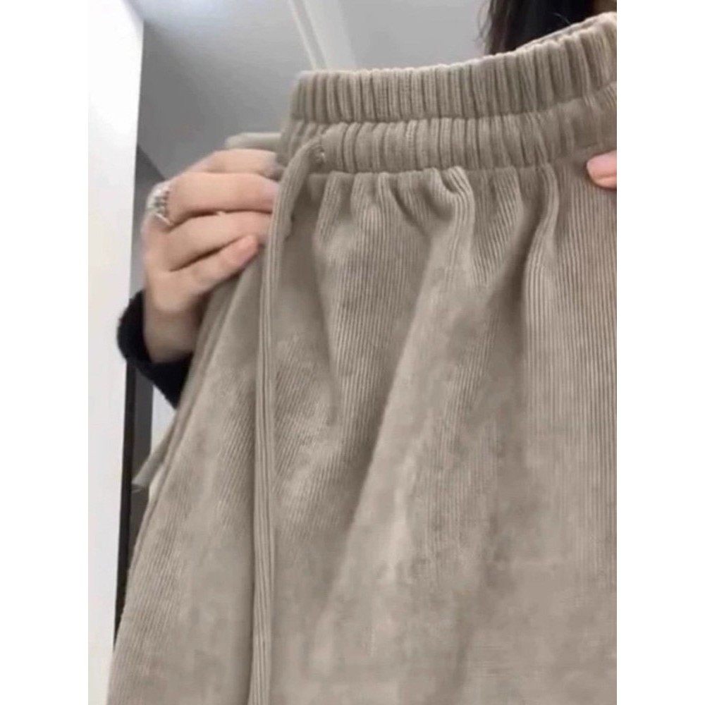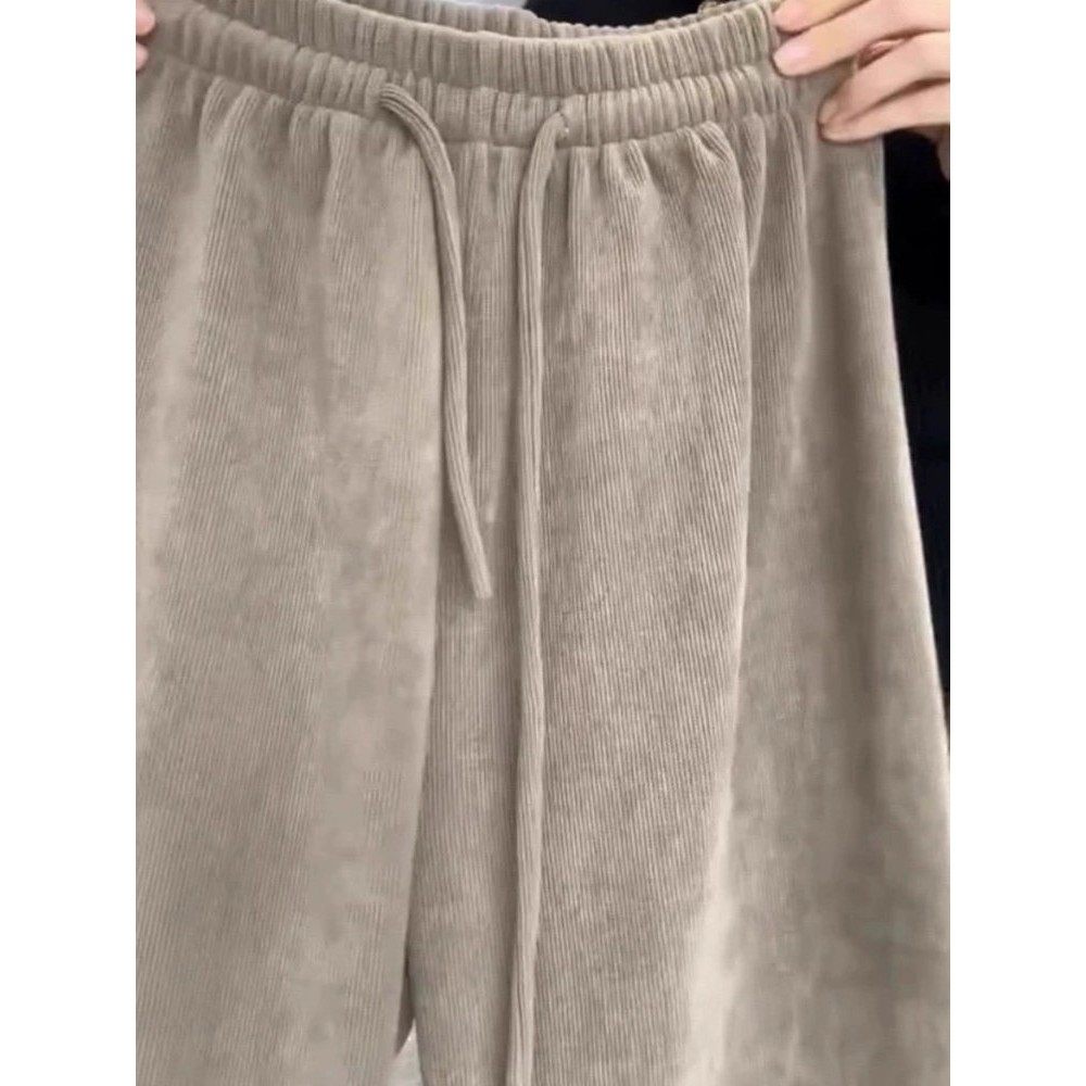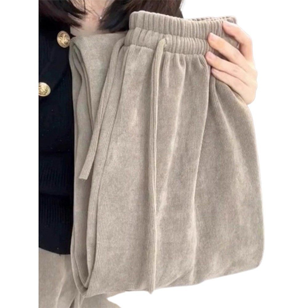 2025欧货爆款梨形身材小个子加绒直筒裤奶茶色松紧腰休闲长裤冬季
