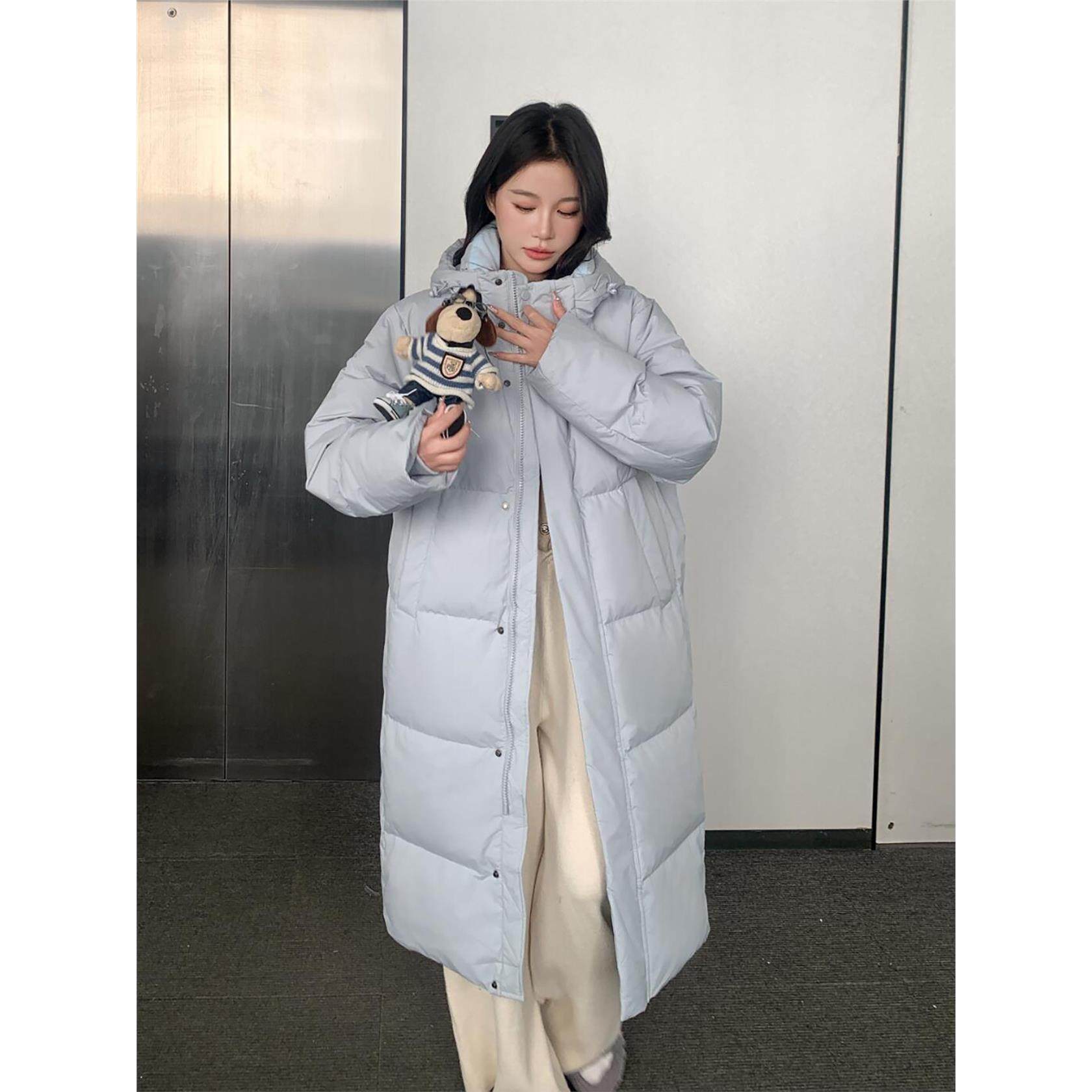 长款过膝中戏羽绒服女2025冬季新款超长白鸭绒加厚学院风情侣外套
