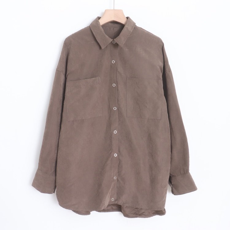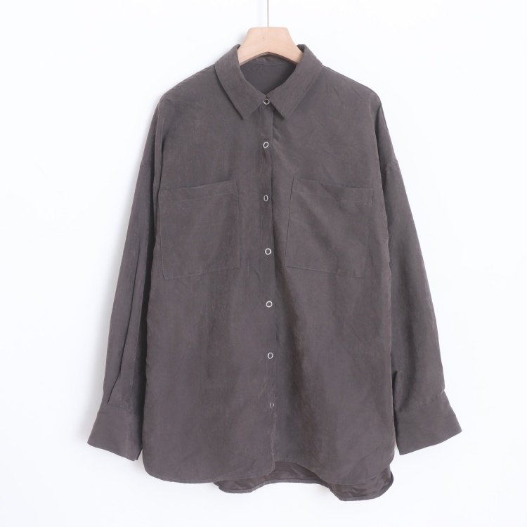 首页> 女装> D16028日单新款按扣翻边领宽松显瘦好搭配女纯色简洁休闲中长衬衫