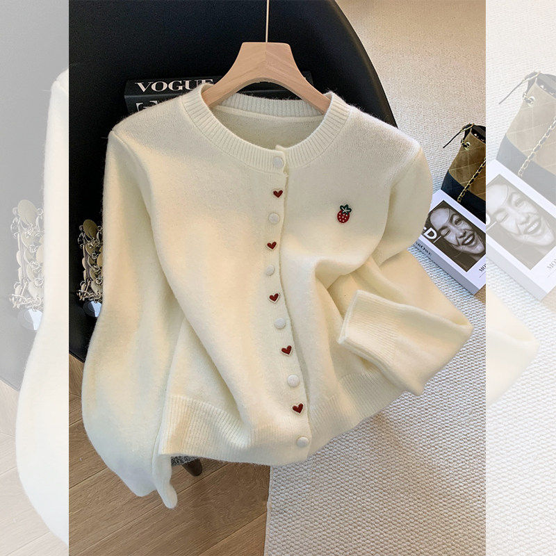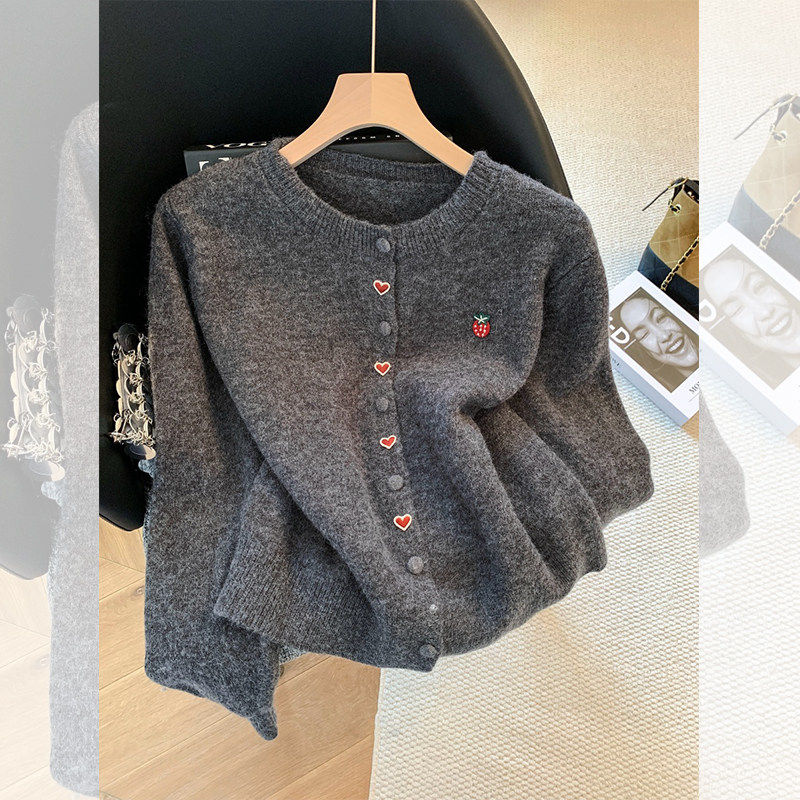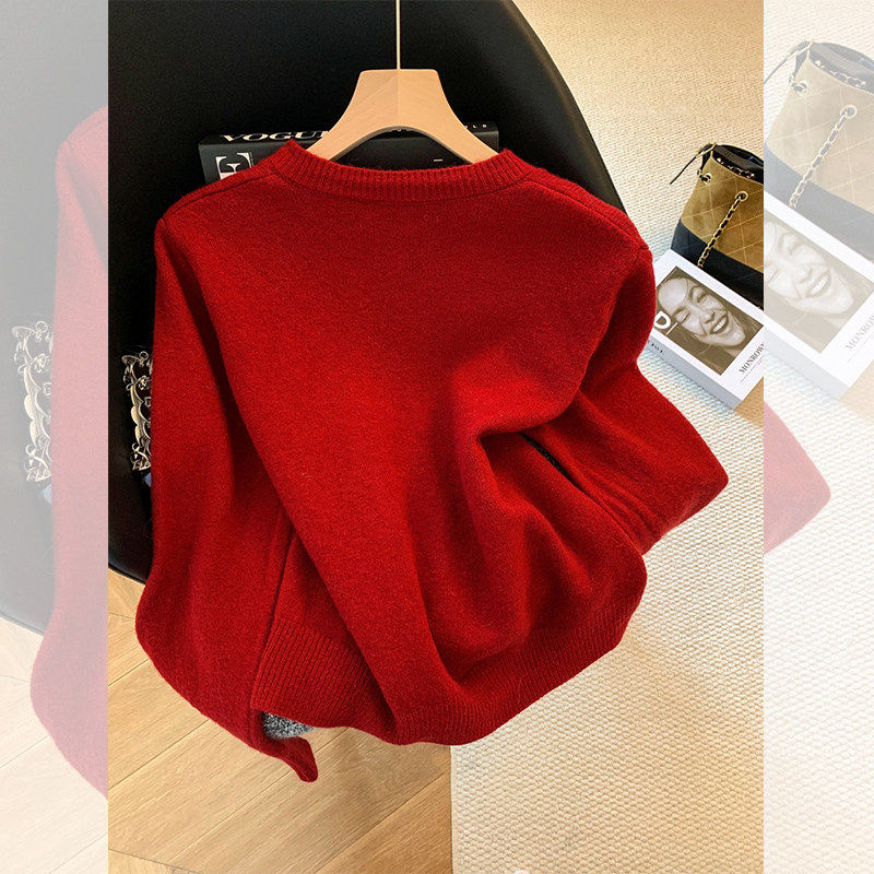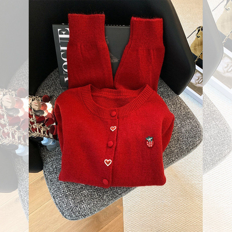 新年圣诞红色纽扣爱心毛衣开衫女秋冬季宽松软糯韩系百搭针织外套