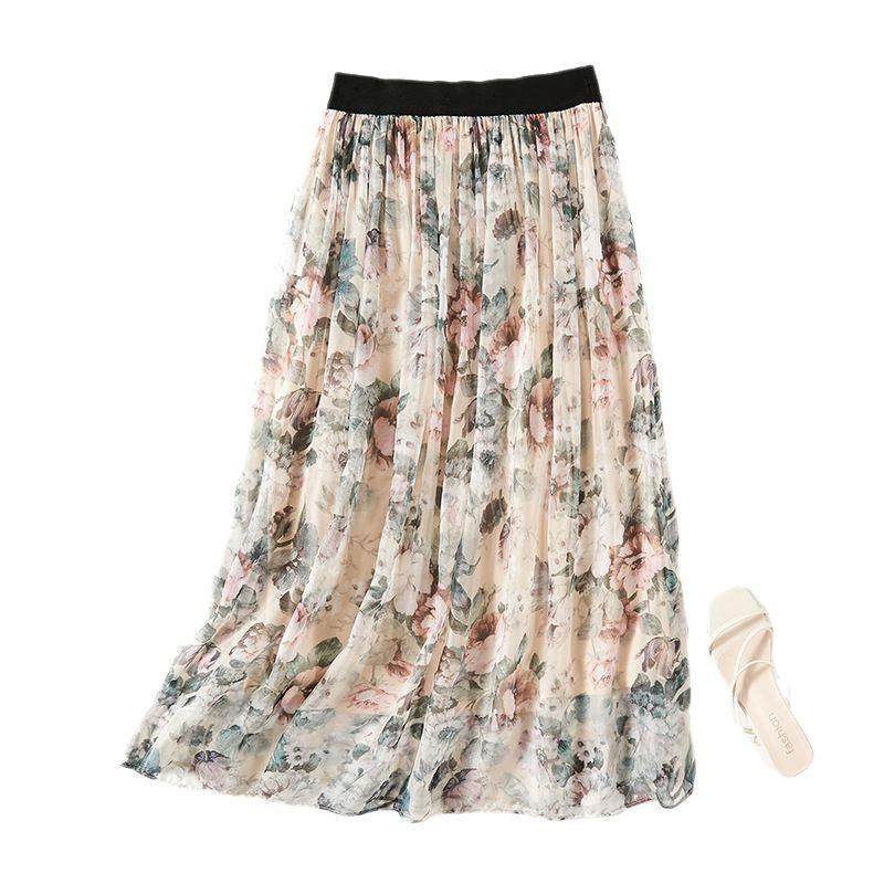 芭碧尔女装真丝半身裙海边度假时尚印花长裙子81135