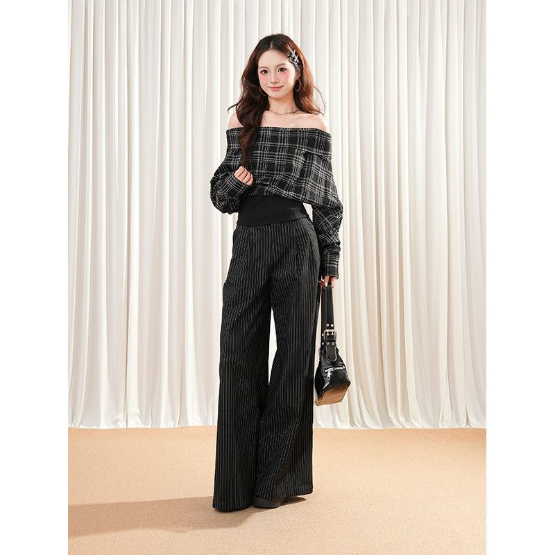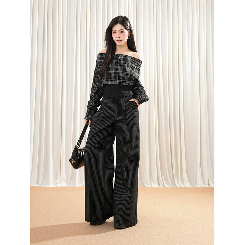 【风情万种】韩系慵懒风休闲格子衬衫+百搭阔腿裤两件女秋季新款