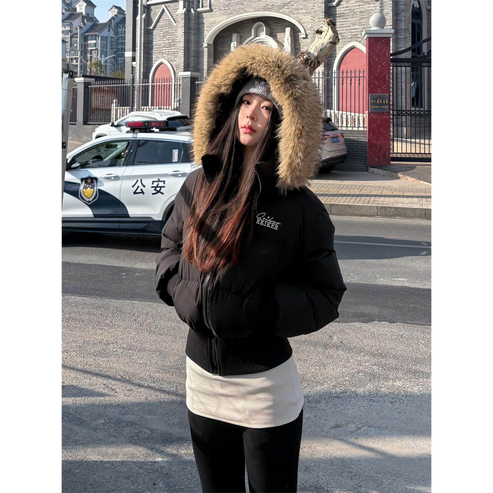 美式覆古羽绒棉服女2025冬季新款高级感显瘦收腰短款加厚棉衣外套