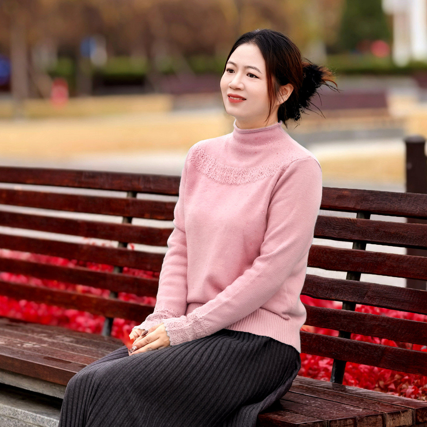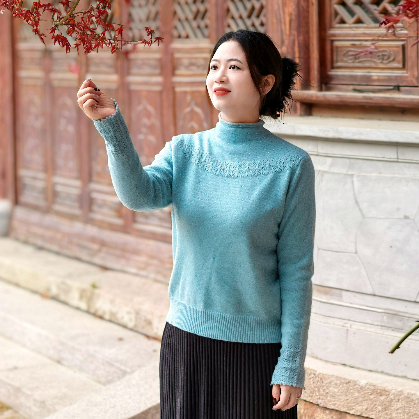 自然小铺 袁妈新年战袍2025冬季针织衫超软重工毛衣半高领上衣女