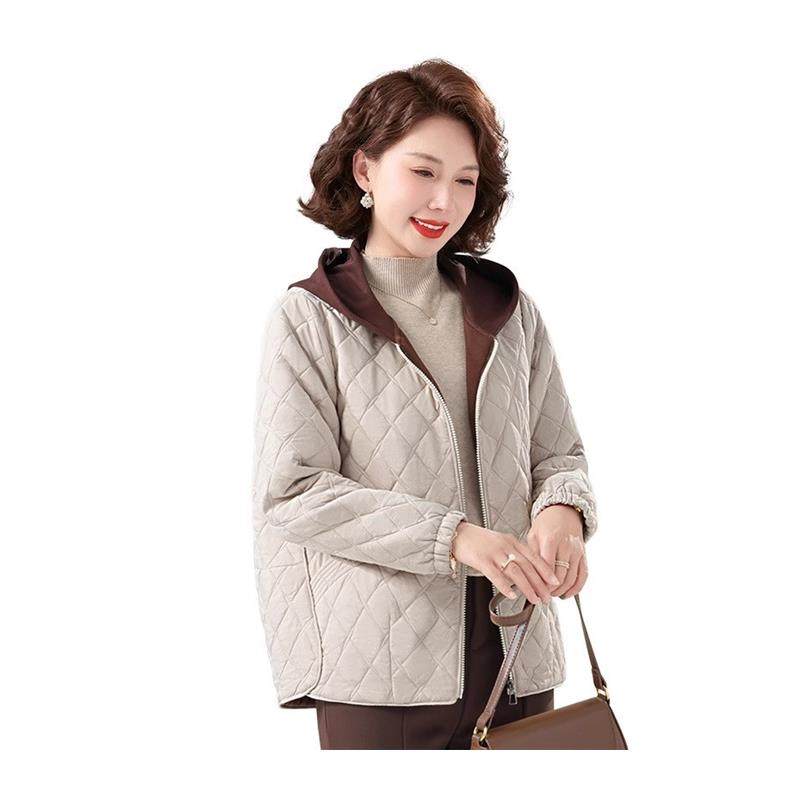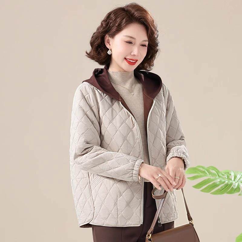 妈妈秋装短款连帽外套2025新款中老年女春秋休闲宽松夹棉服上衣服