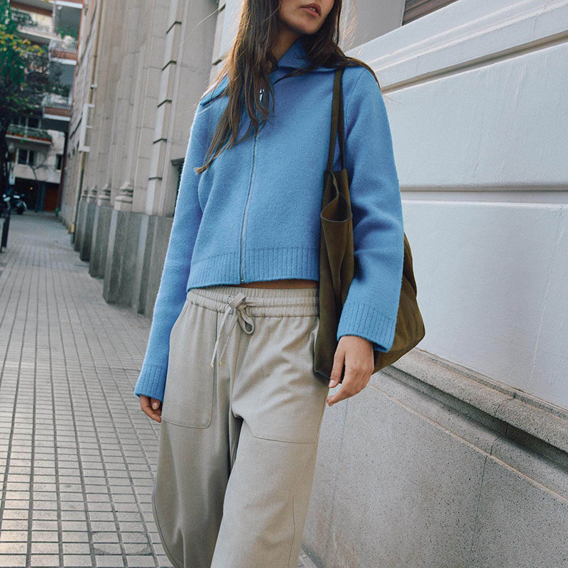 ZA 2026春季新款女装时尚气质长袖翻领拉链针织外套 5755002 400