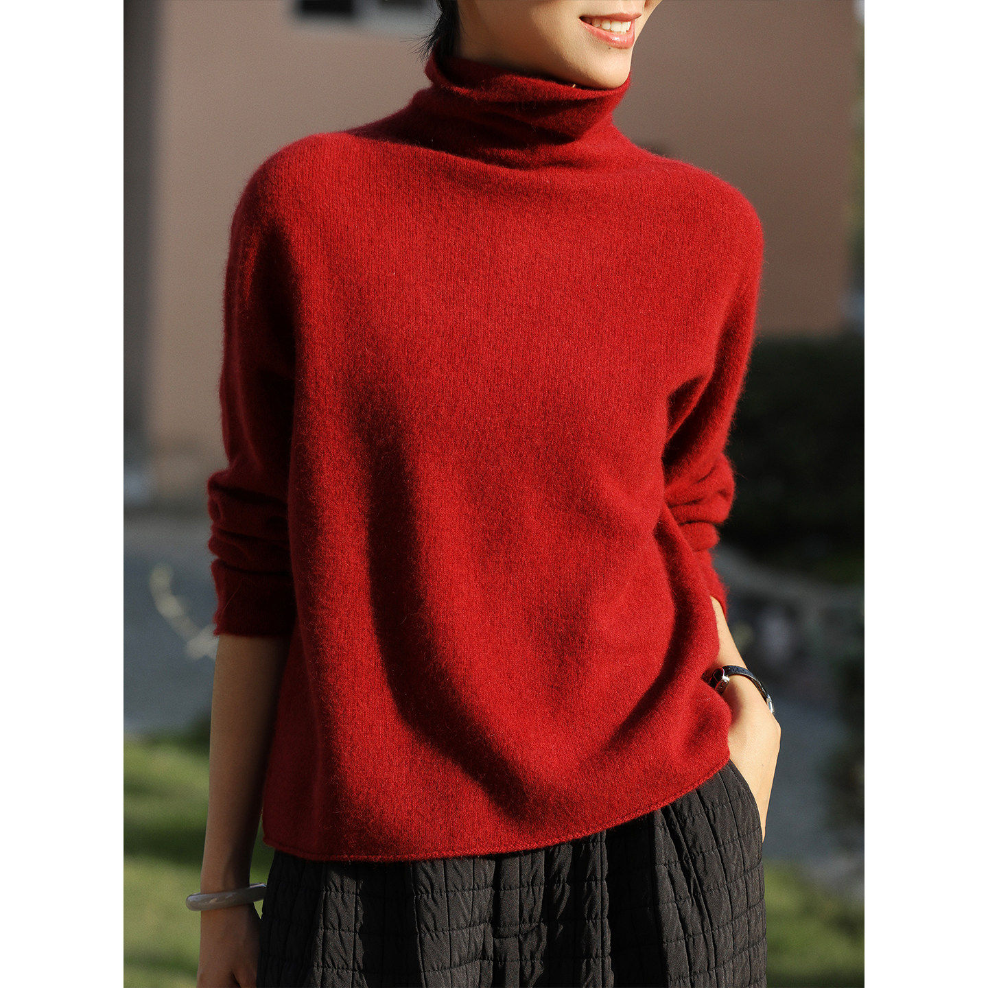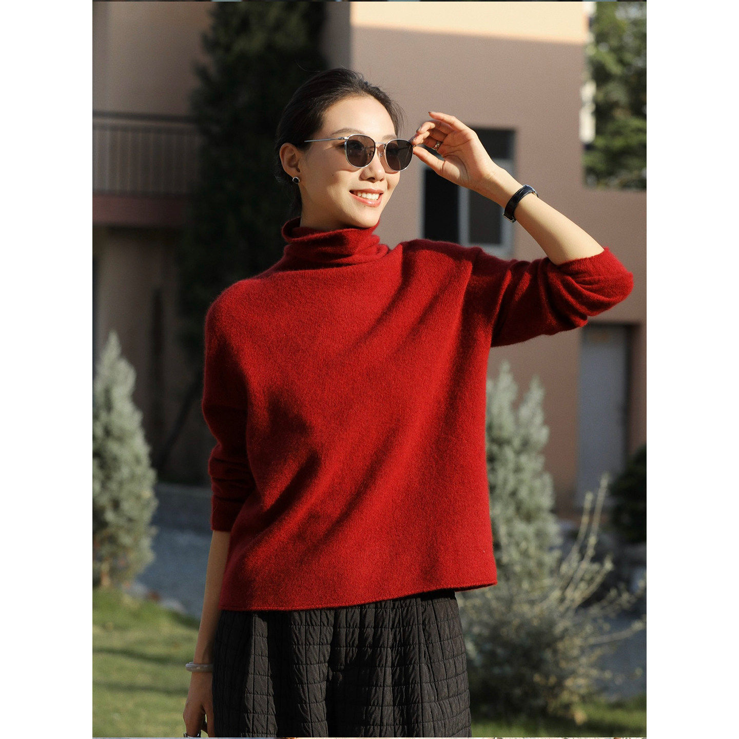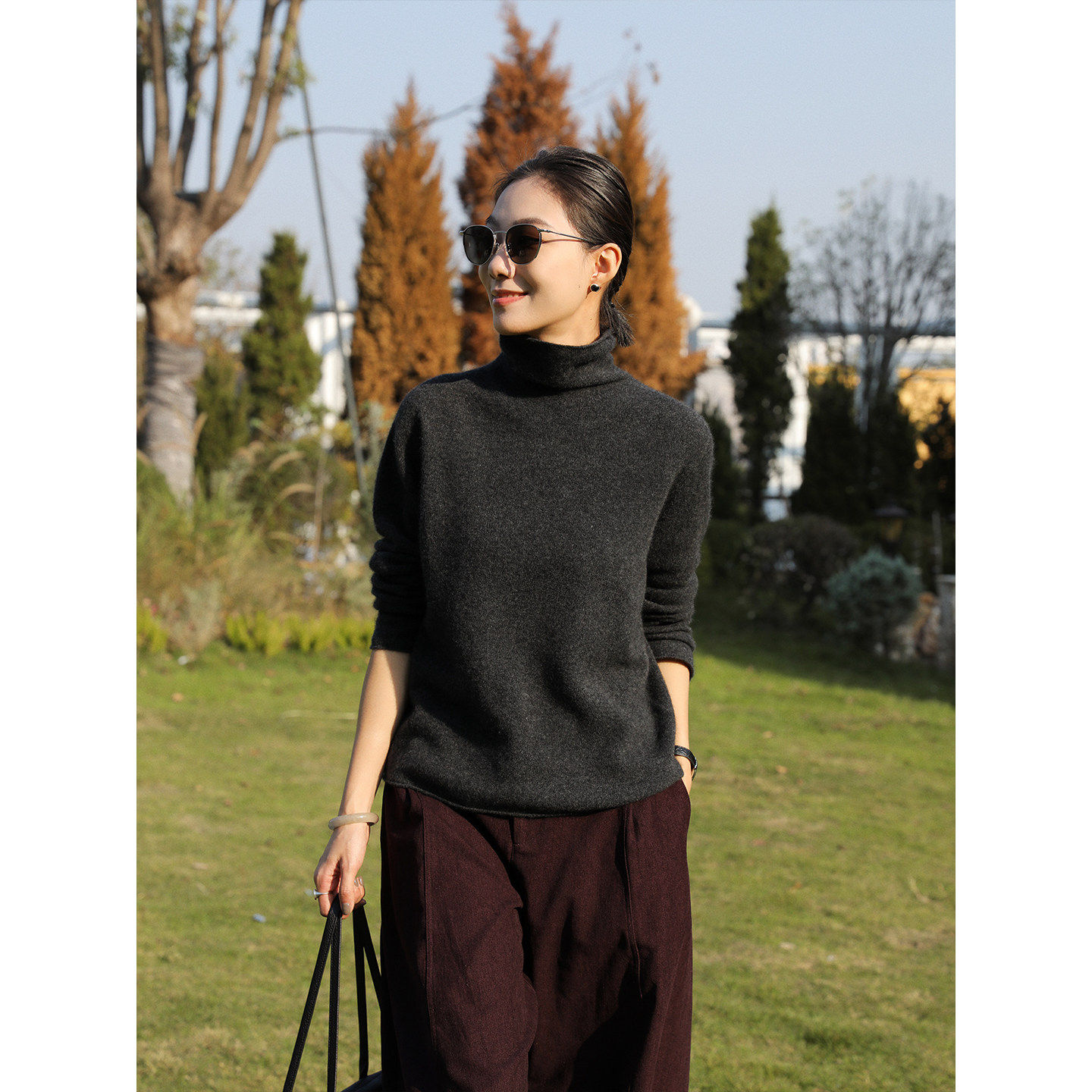 周粥绵羊毛孔雀蓝无缝打底衫冬季新款修身内搭保暖高领套头毛衣女