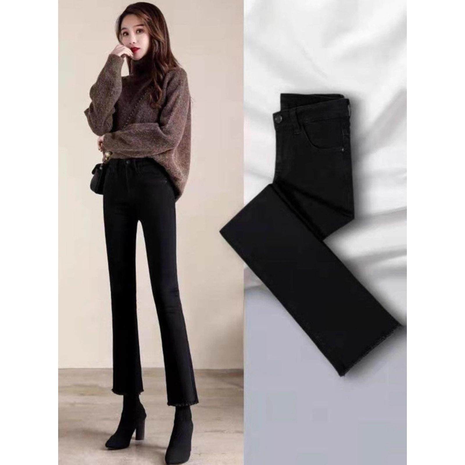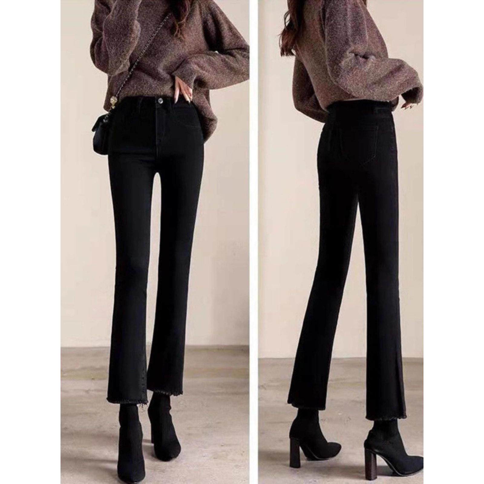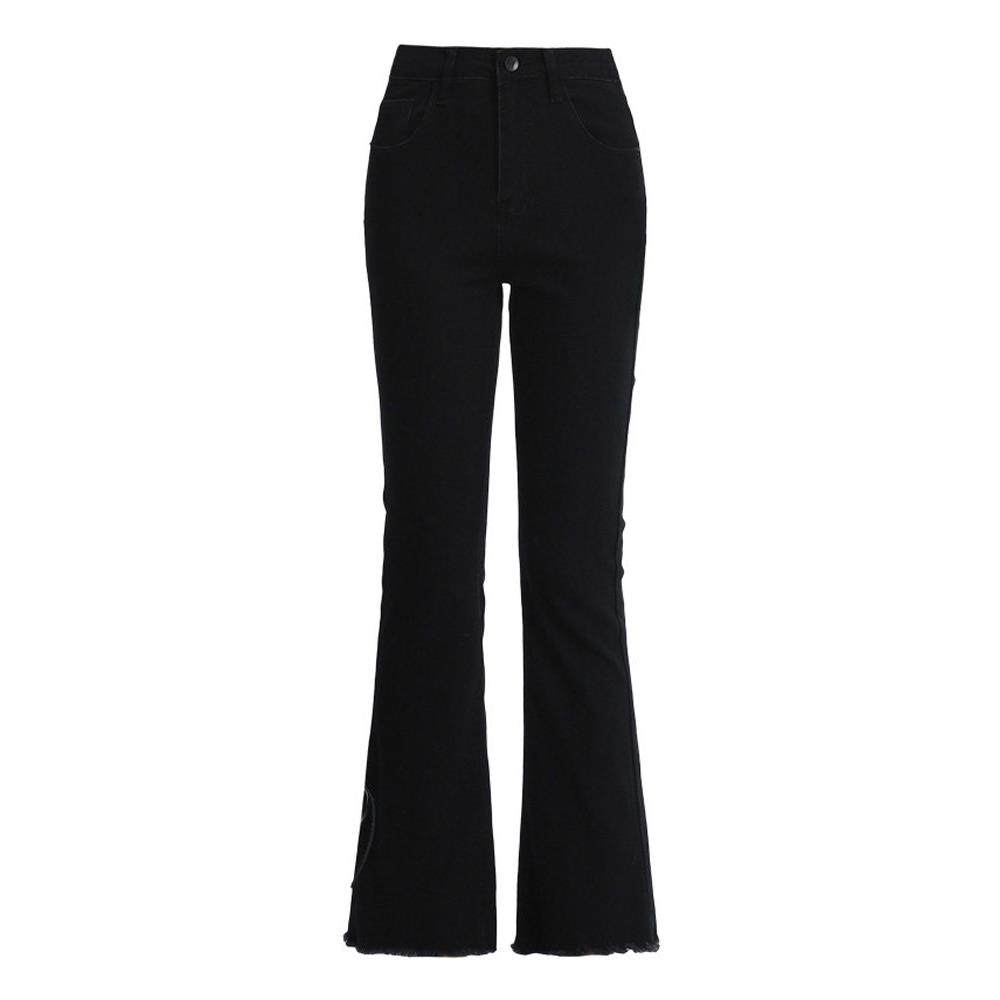 首页> 女装> SPYB黑色高腰修身微喇牛仔裤女春秋季新款爆款小个子女士喇叭裤子