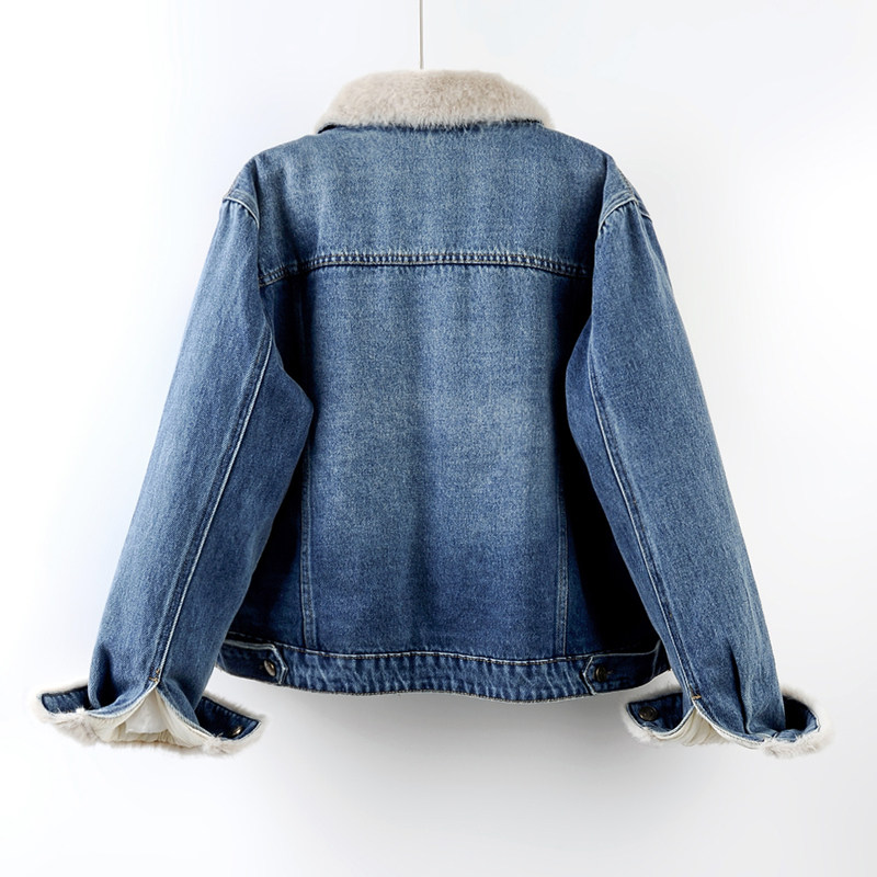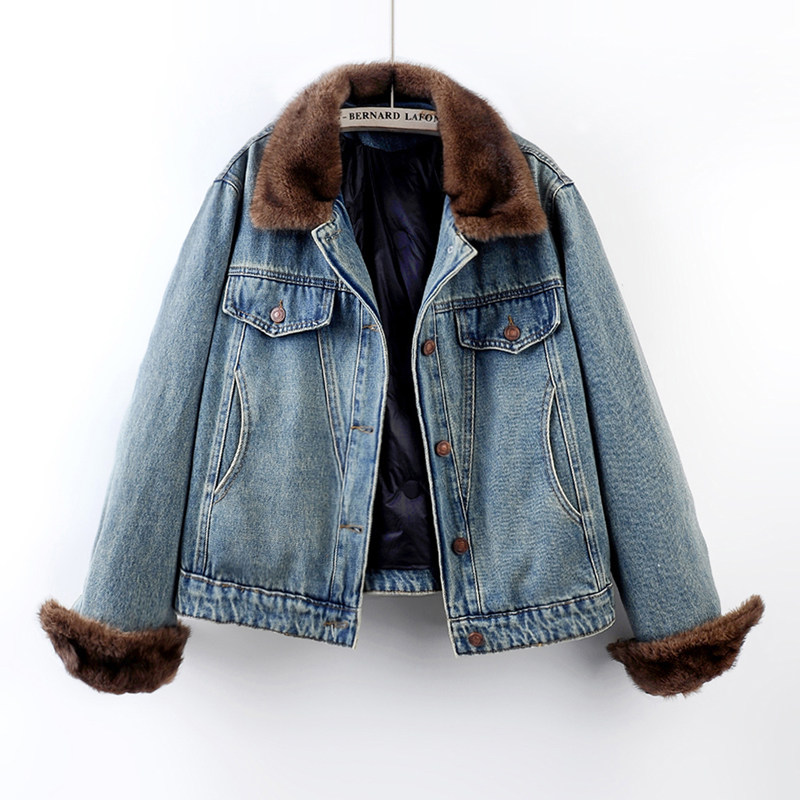 首页> 女装> 2025冬季新款韩版复古毛领羽绒内胆牛仔外套女加绒加厚小个子上衣