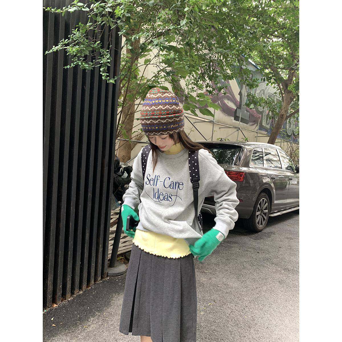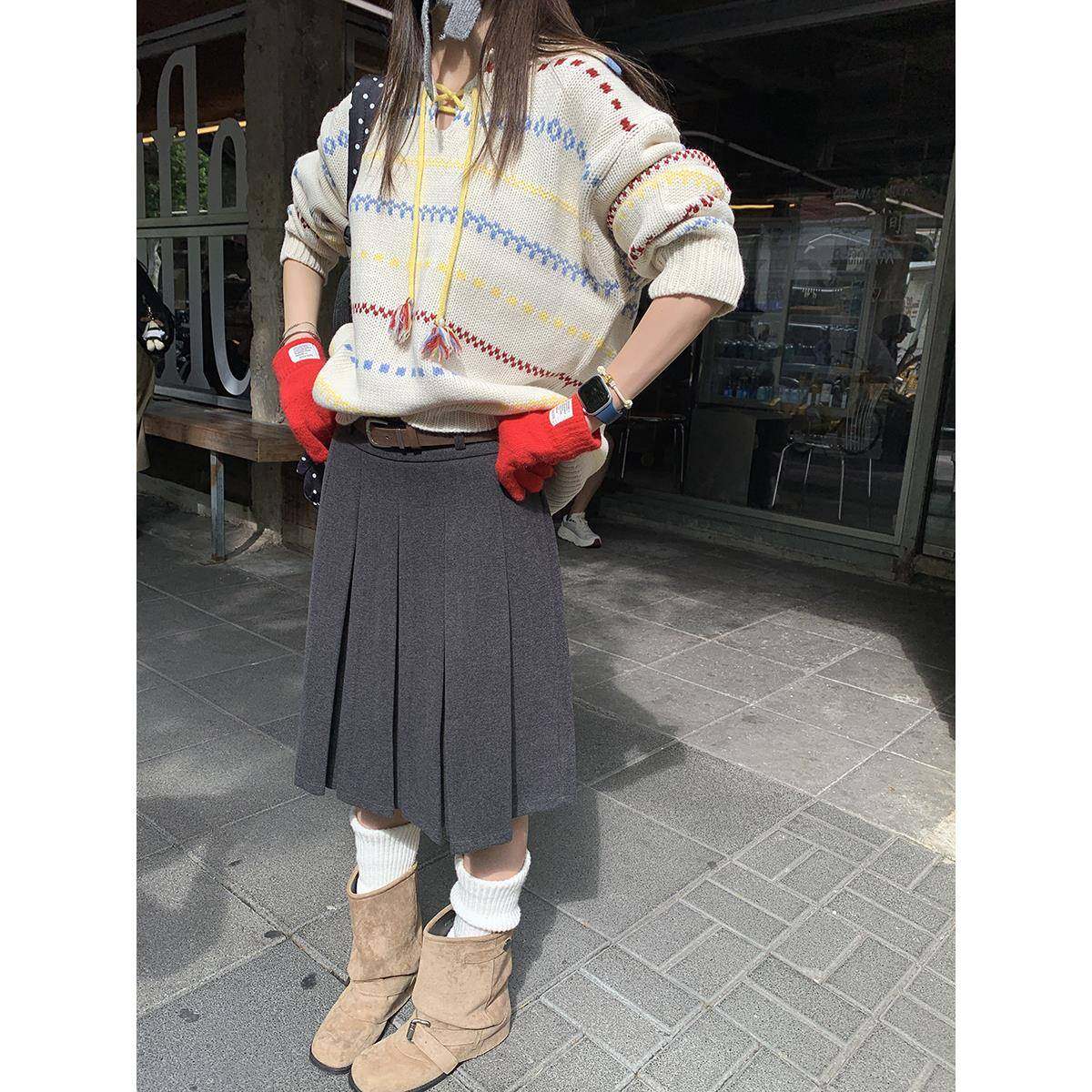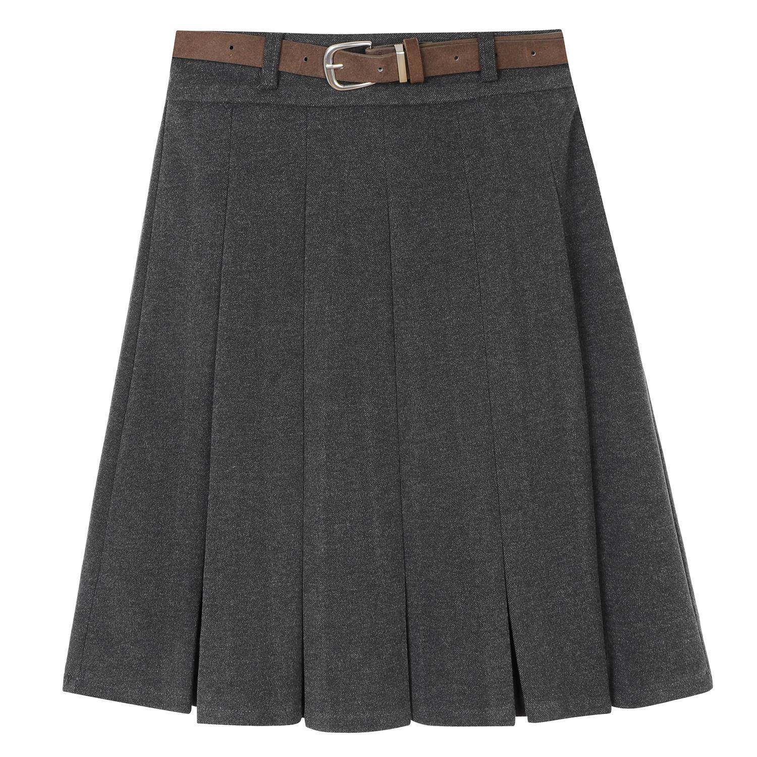 馨帮帮 梨形伯克利裙子女秋冬学院风A字短裙灰色毛呢百褶半身裙