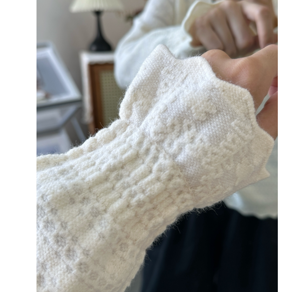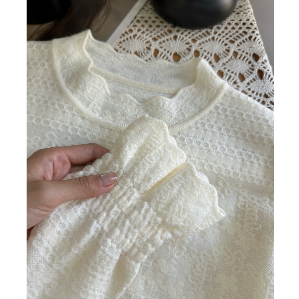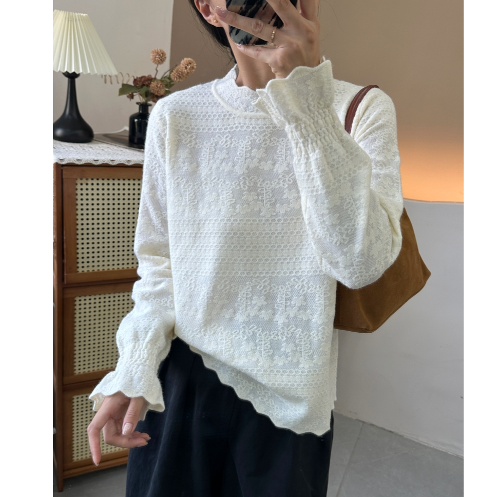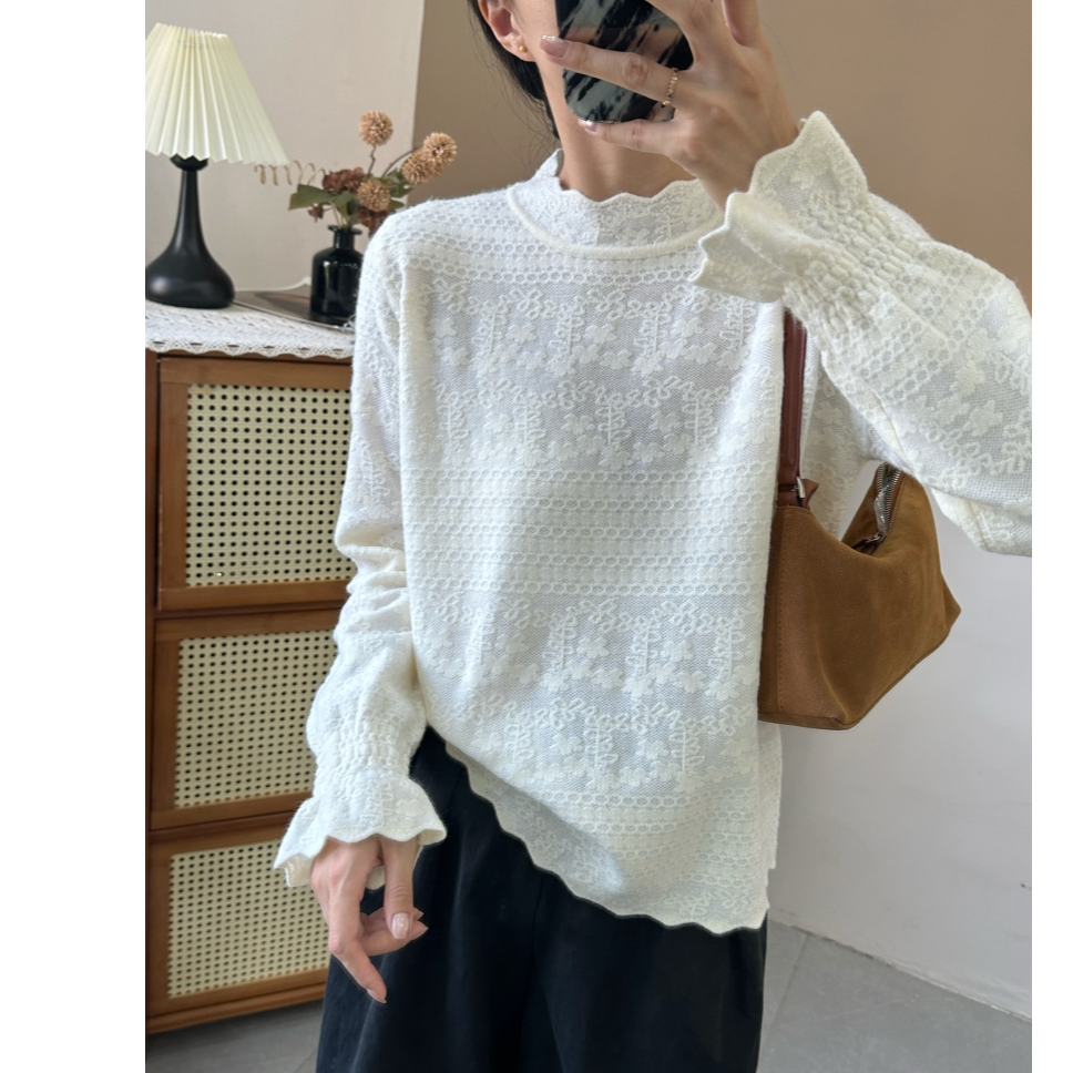 花边寸领加厚小花朵蕾丝打底衫别致长袖针织衫宽松显瘦上衣半高领